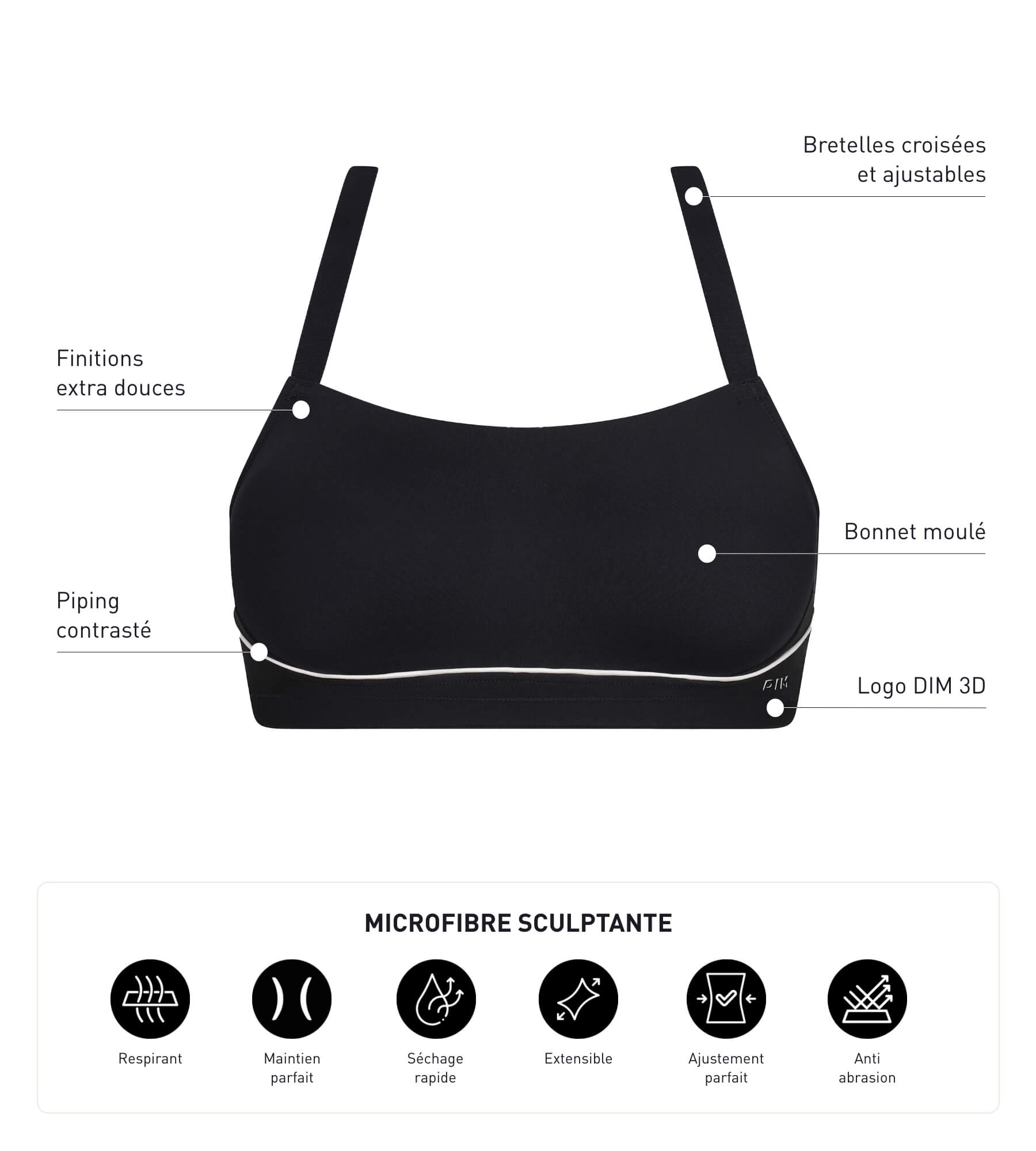 Shape and support your breasts effectively with the Dim Move microfibre sports bra!