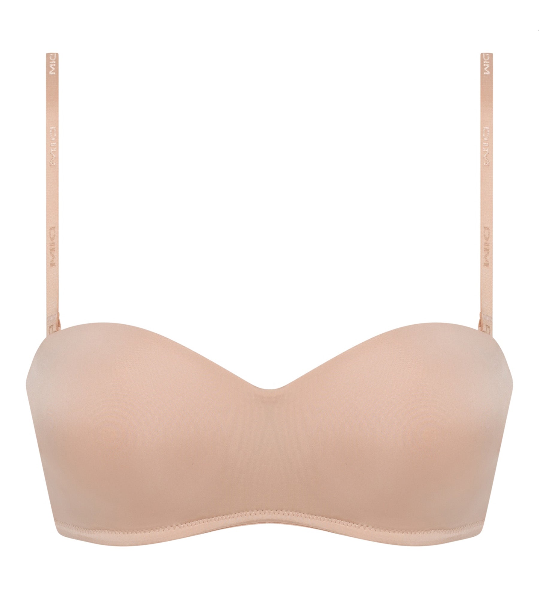 Under a strapless dress, opt for the Dim InvisiFree nude wireless strapless bra! We love: The nude colour, invisible under your clothes. The great support, even without straps. The fine padding, for a pretty, rounded bust. Suitable for small and medium breasts. Under a strapless top or dress, be super discreet with the Dim InvisiFree nude wireless strapless bra! An essential style for any wardrobe, this women's bra combines comfort with invisibility and support. Pair it with the InvisiFree nude microfibre panties for a 100% invisible, feminine set!