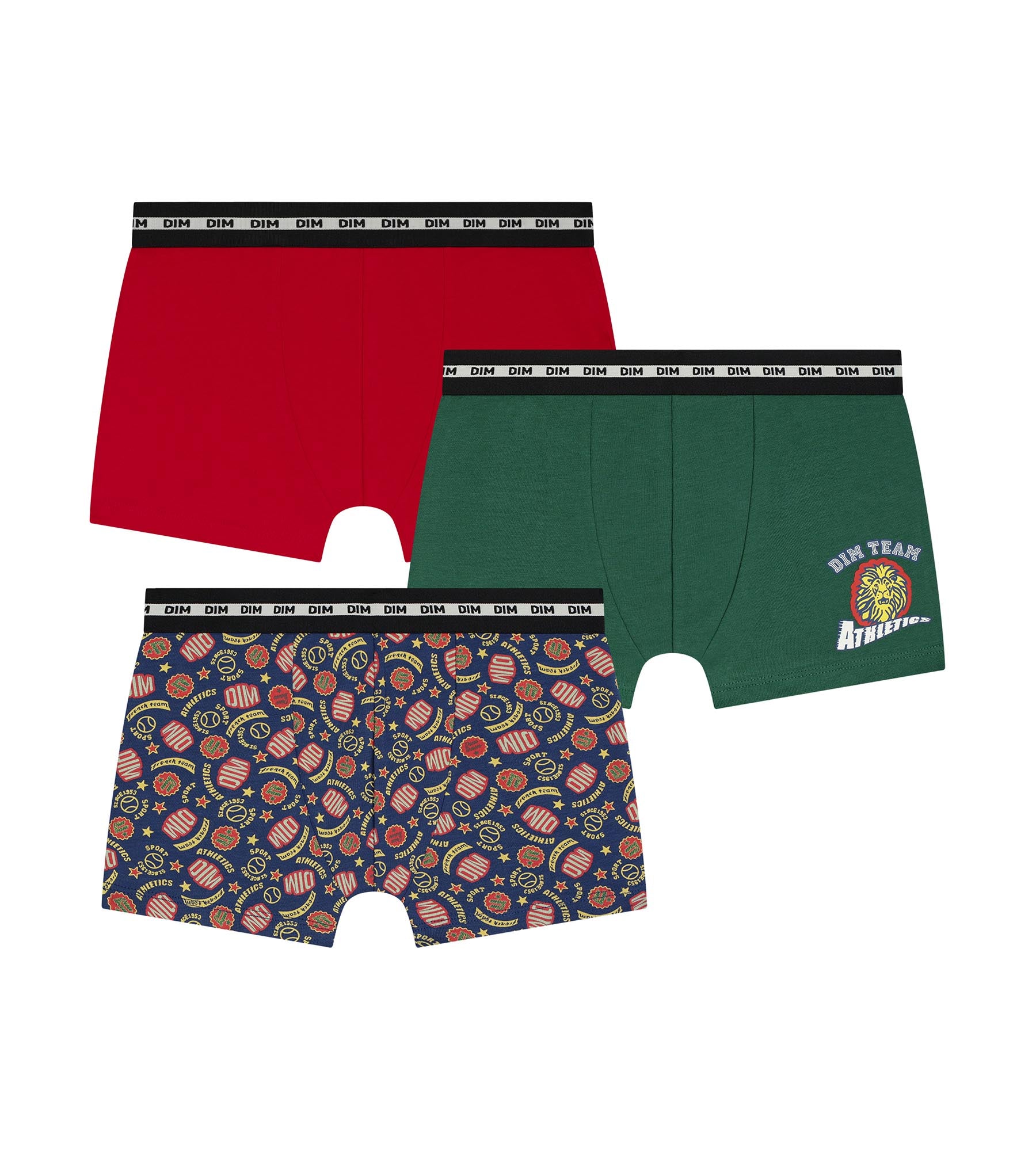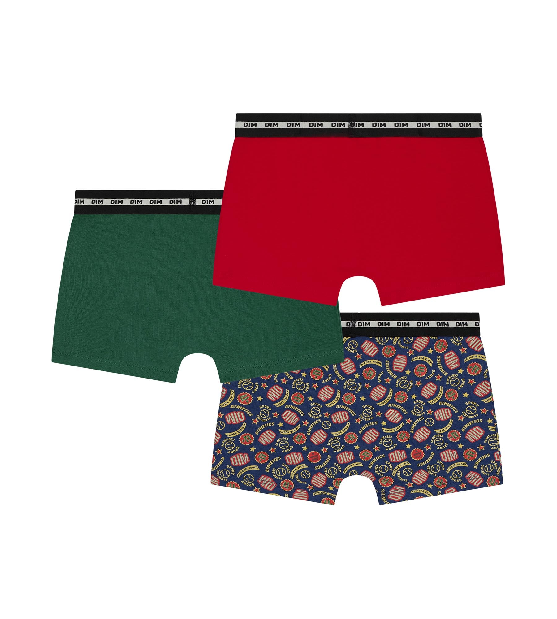 3er-Pack Boxershorts für Kinder in Rot und Grün mit Dim-Logo aus Stretch-Baumwolle