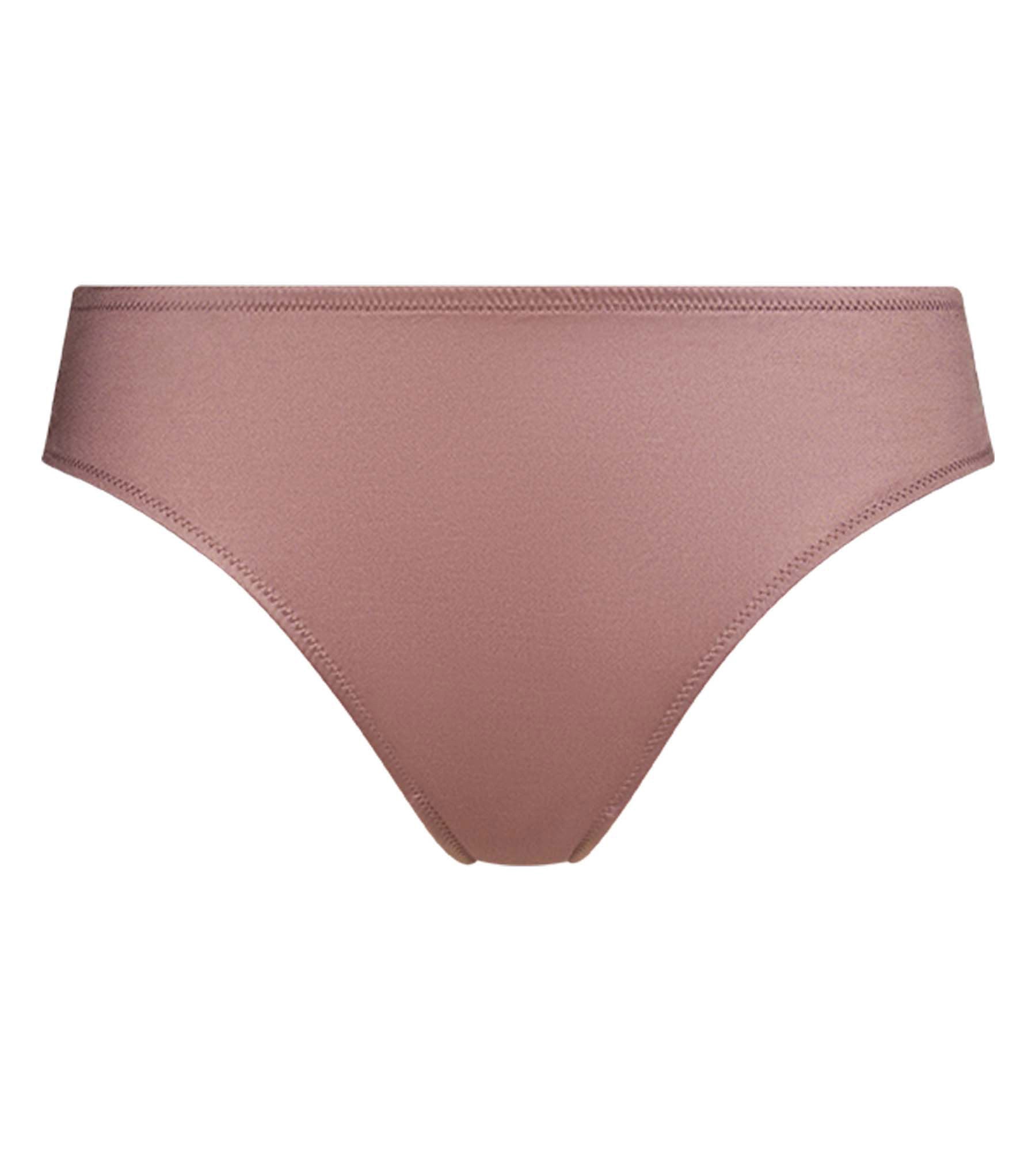 Der Slip aus Dim Chocolove-Spitze und braunem Satin ist eine Kombination aus Weichheit und Transparenz und verbindet seidigen Komfort mit dezenter Sinnlichkeit.