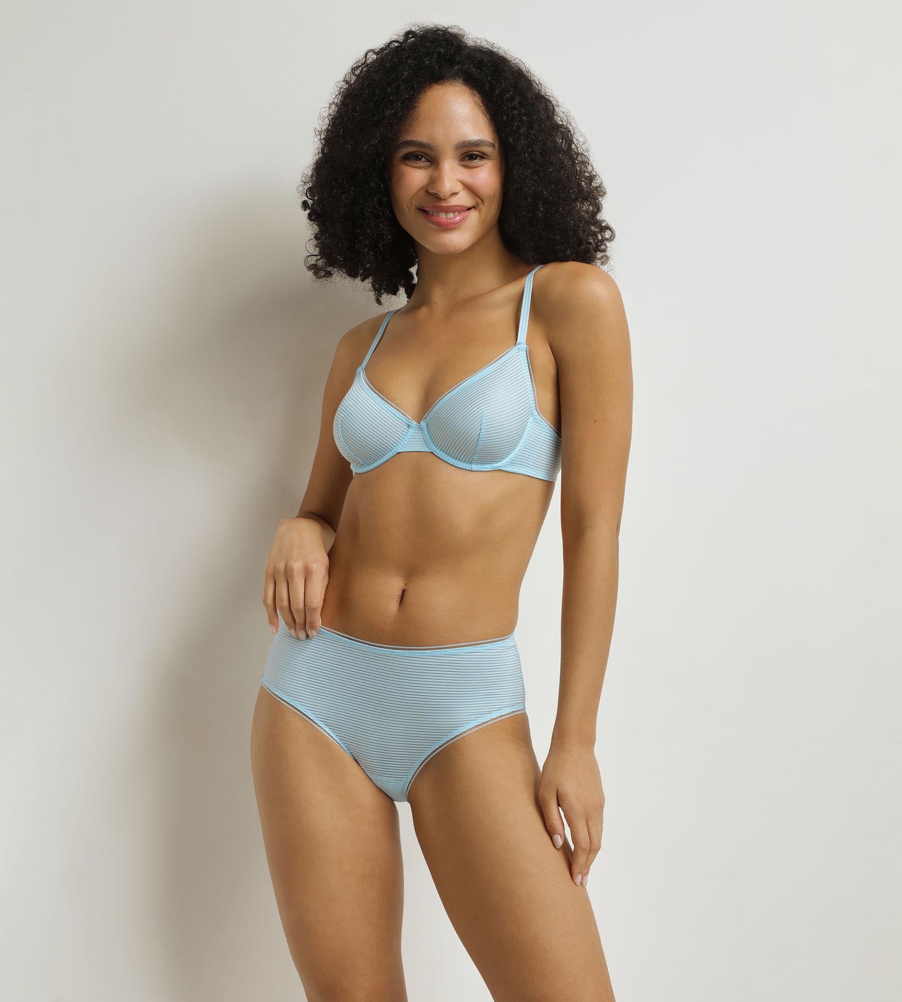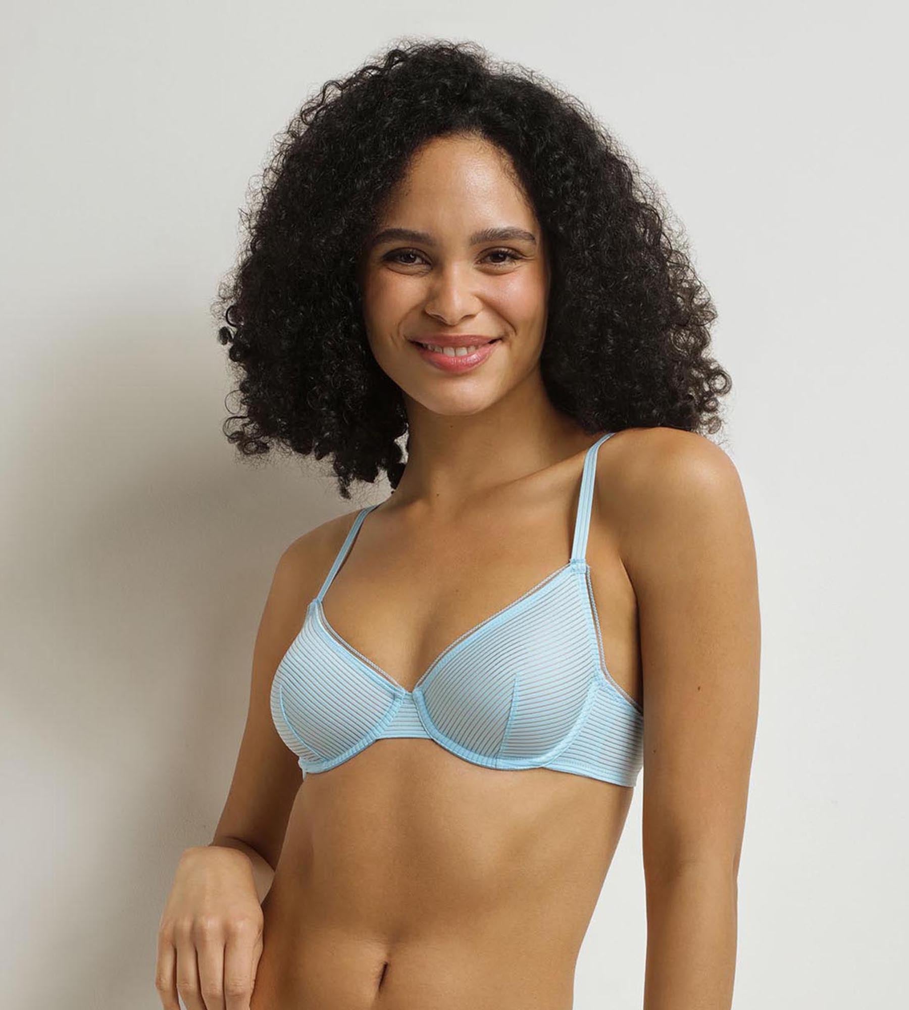 Ihr Look ist élégante mit dem Korb-BH Bleu Chemise Dim x Ines de La Fressange mit transparenten épurées Linien.
