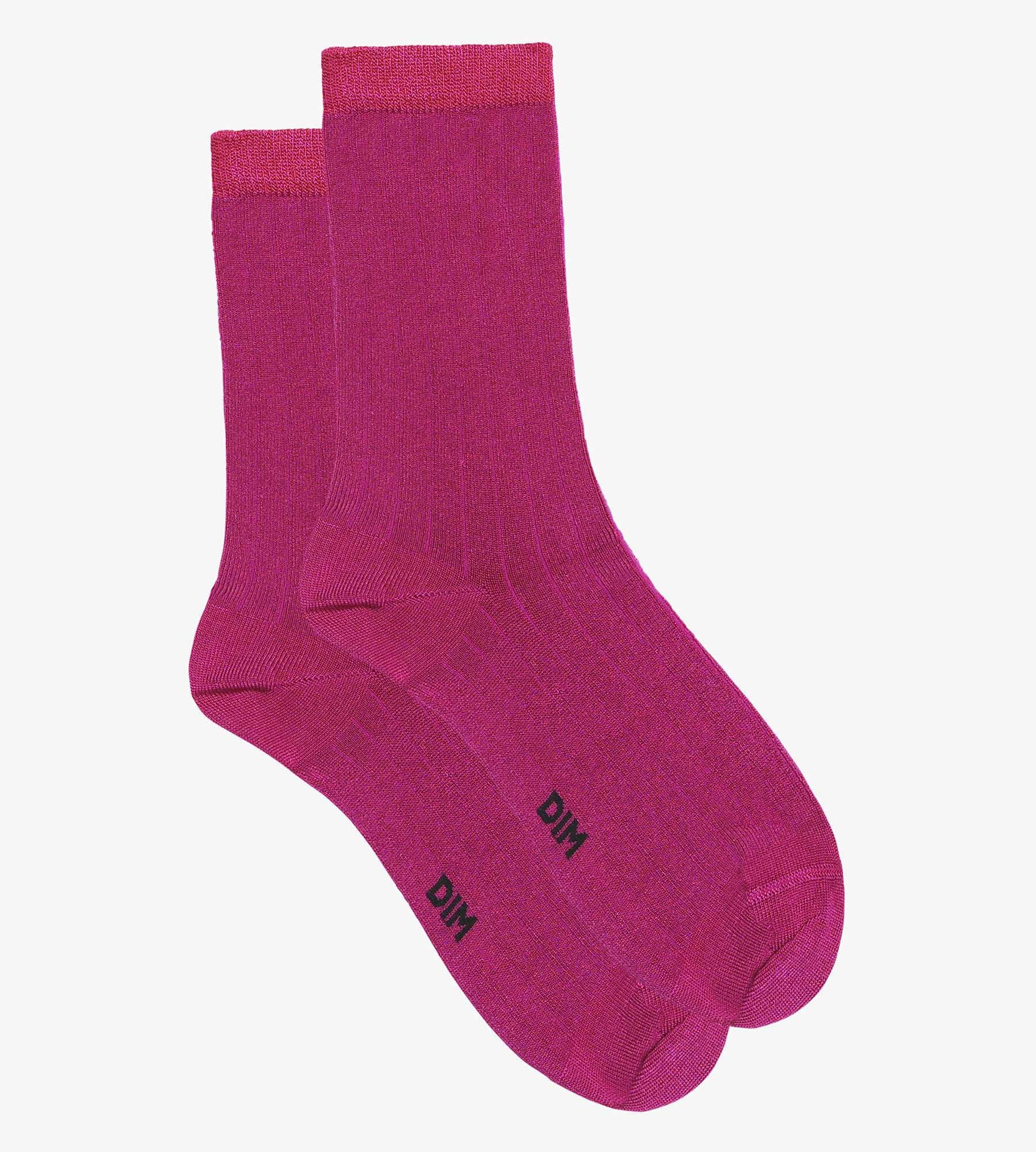 Fuchsia flache Damensocken aus satinierter, gerippter Baumwolle - Dim Mode