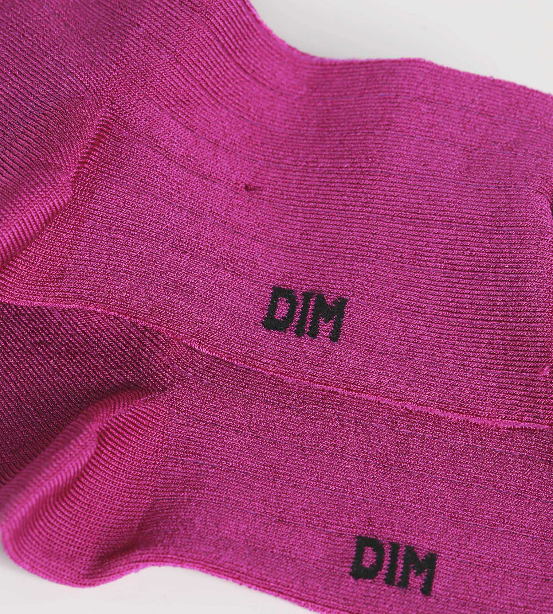 Bring Dynamik in deine Outfits mit den fuchsiafarbenen flachen Damensocken aus satinierter, gerippter Baumwolle – Dim Mode!