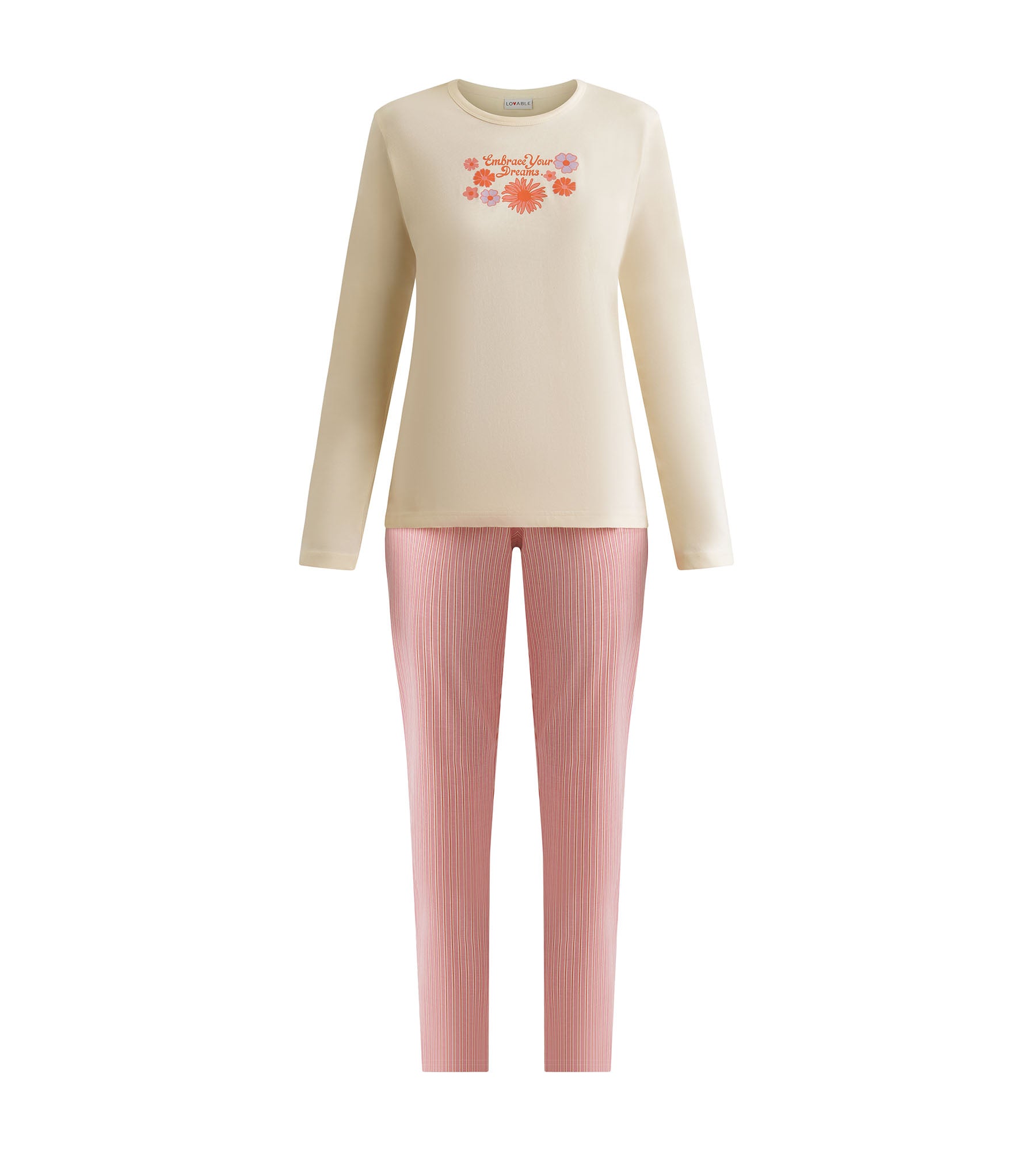Pyjama-Set Damen Hose Ivory Grau Gestreift Don't Disturb