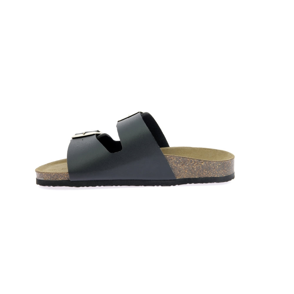 Schwarze Damen-Pantoletten aus Leder und Kork