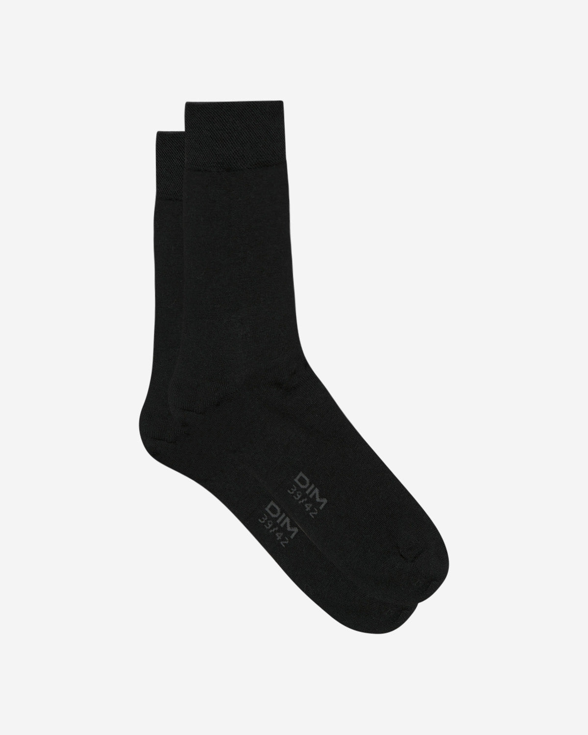 Ebenfalls wärmend und seidig weich: unsere DIM Bambus Herrensocken aus Viskose in Schwarz.