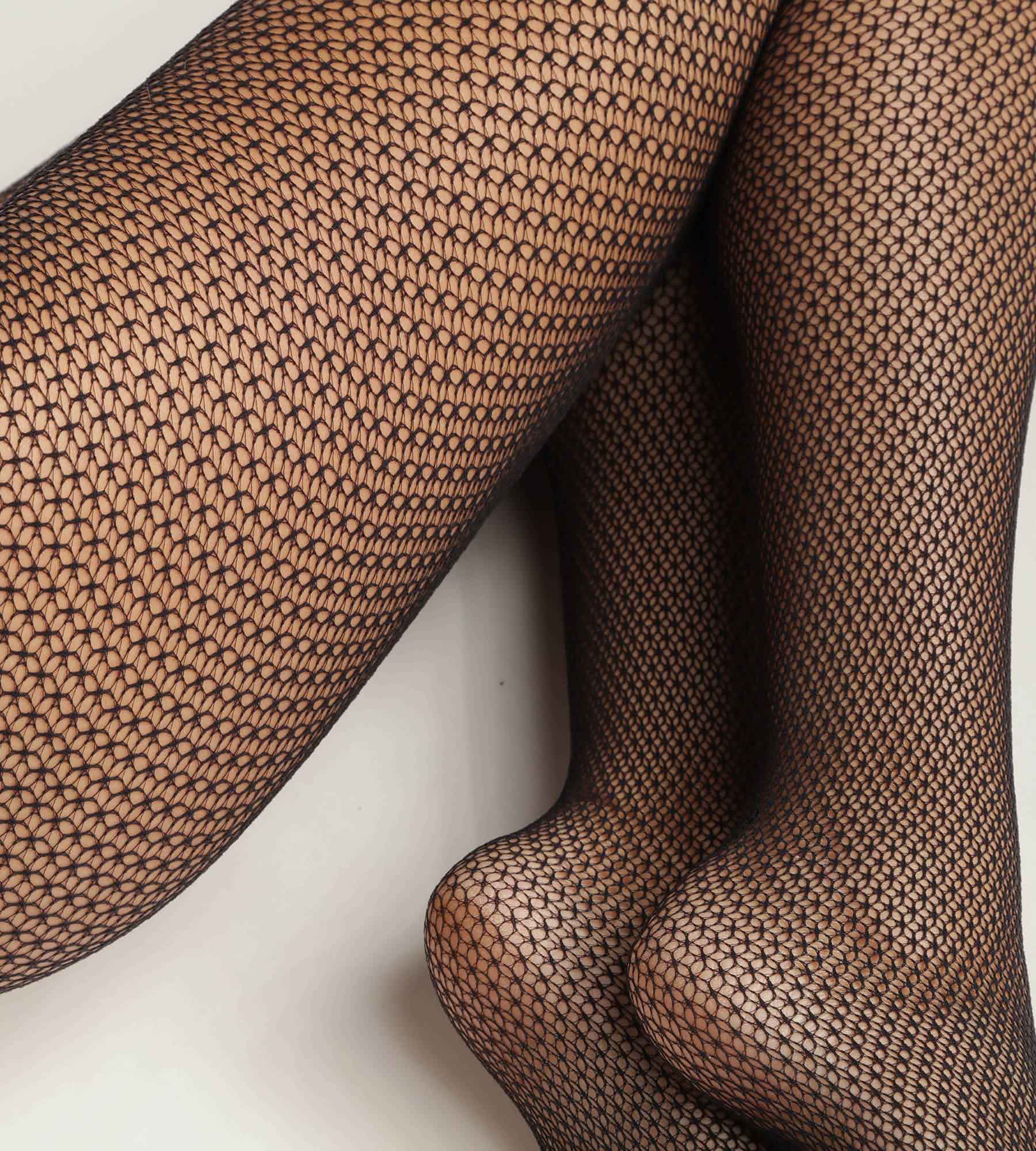 Schwarze Strumpfhose aus geometrischer Spitze- DIM Style