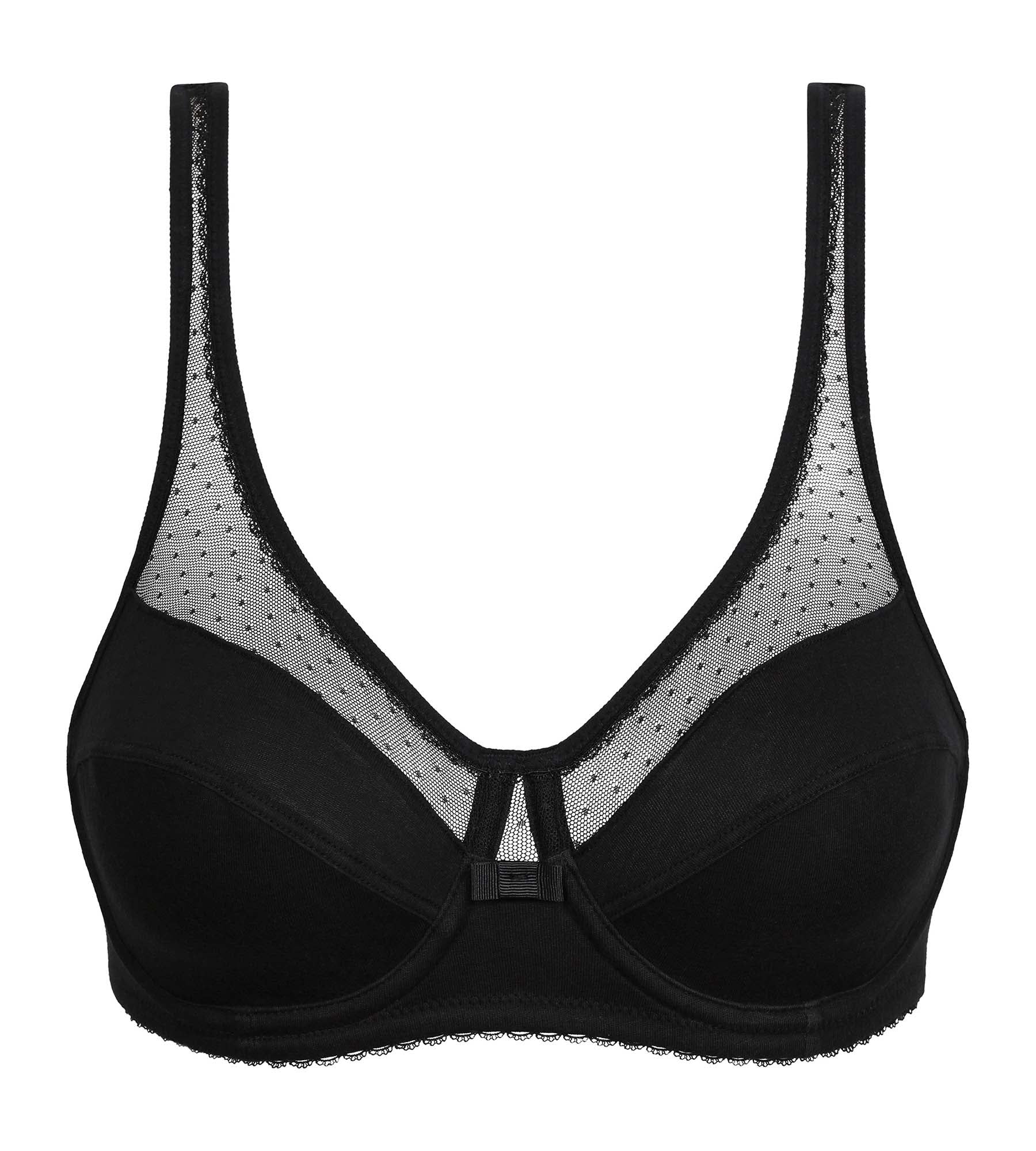 Übernimm den ikonischen Stil und den optimalen Komfort des Bügel-BHs Generous Bio-Baumwolle Schwarz mit gefiedertem Dekolleté!