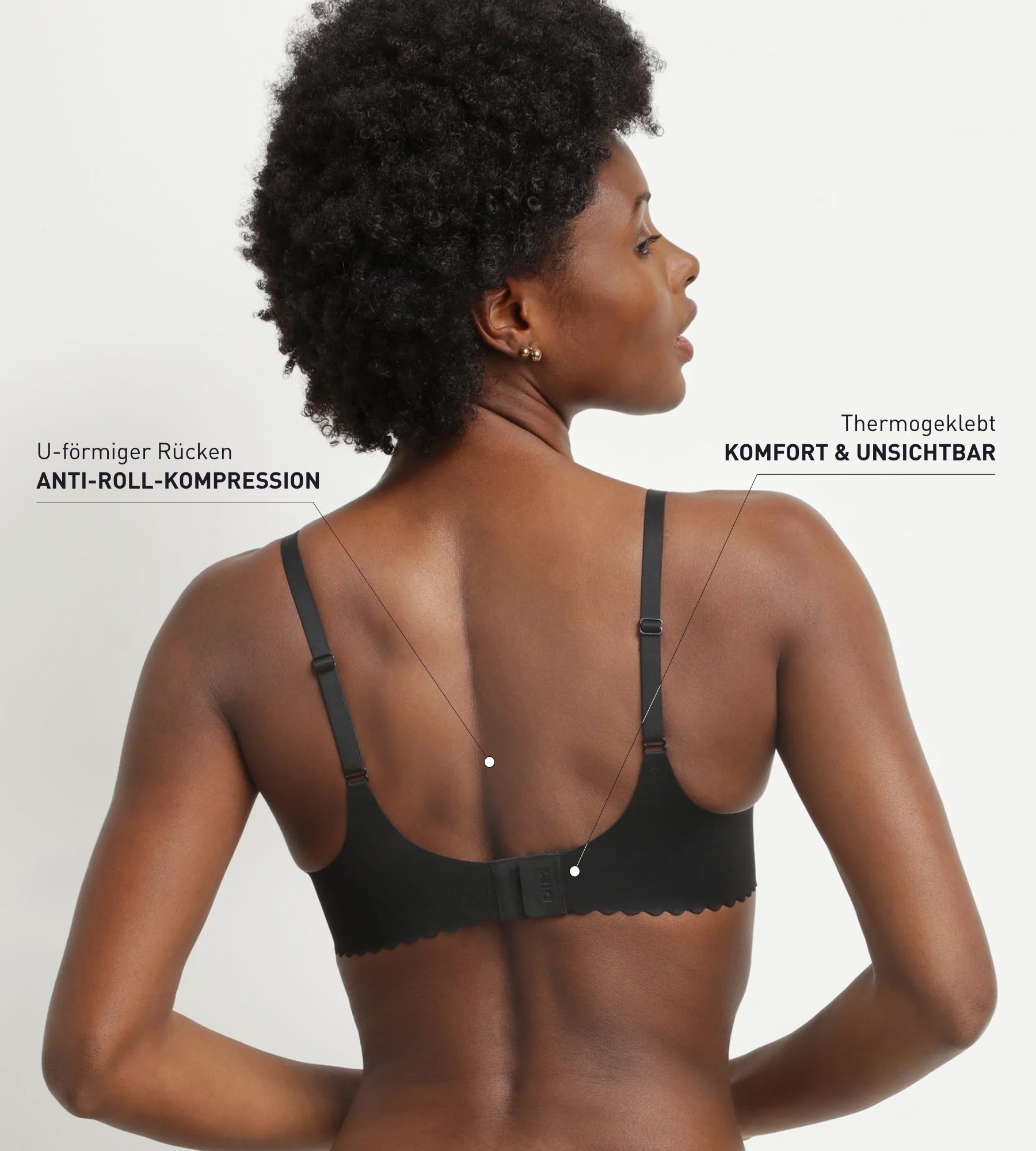 Seidig-leichte Mikrofaser schmiegt sich an wie eine zweite Haut, umhüllt und formt die Brust und sorgt für 100% Tragekomfort: Der schwarze Body Touch Bügel-BH macht seinen Job einfach richtig gut. Sein schmeichelhafter V-Ausschnitt mit weicher Wellenkante setzt Dein Dekolleté perfekt in Szene.
