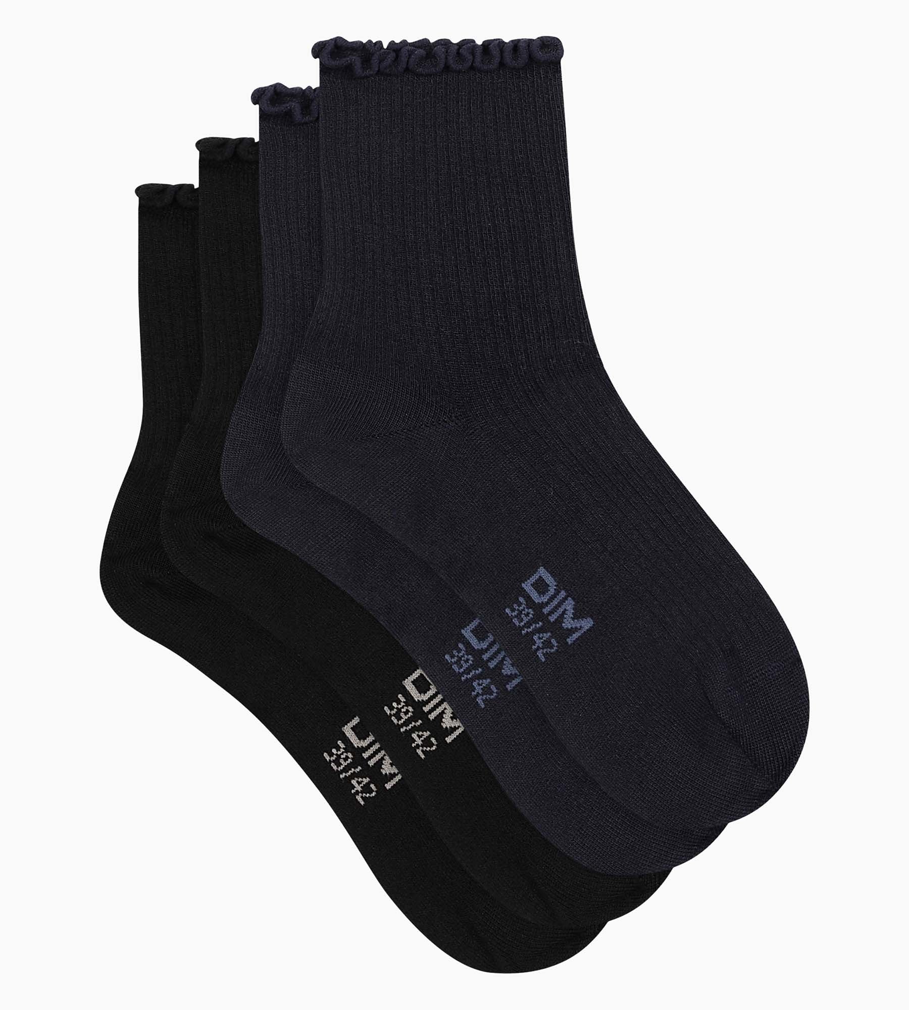 2er-Pack Damensocken mit Rüschen schwarz/dunkelblau - DIM Modal