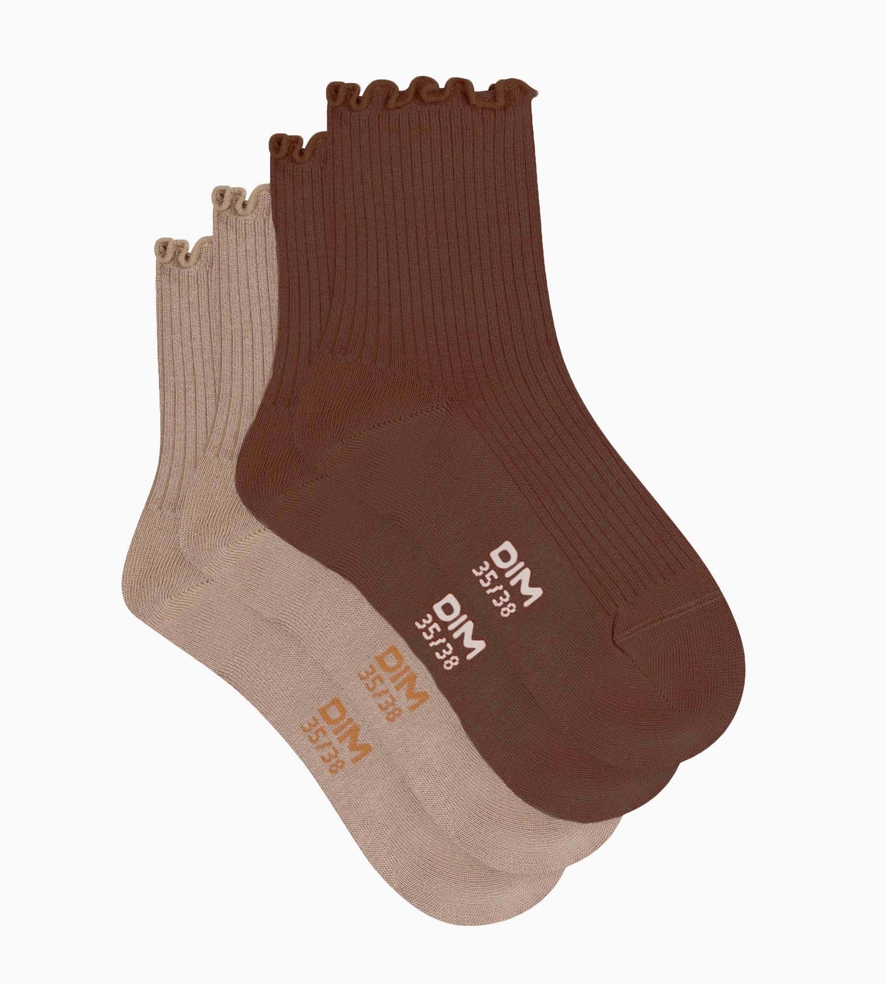 Verleihe deinen Outfits eine warme und feminine Note mit diesem 2er-Pack Dim-Damensocken aus Baumwoll-Modal in Taupe/Cappuccino mit zartem Wellenrand.