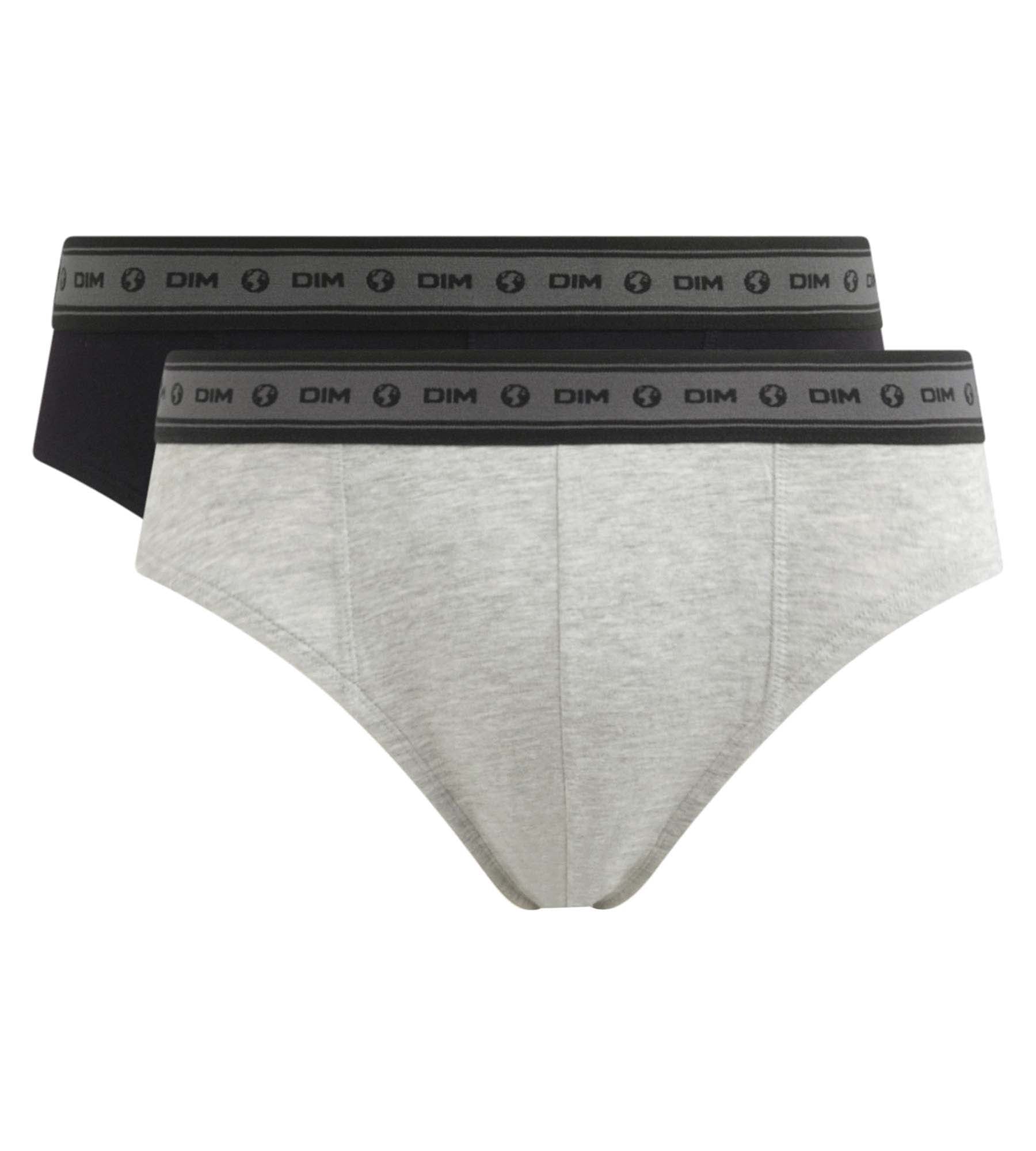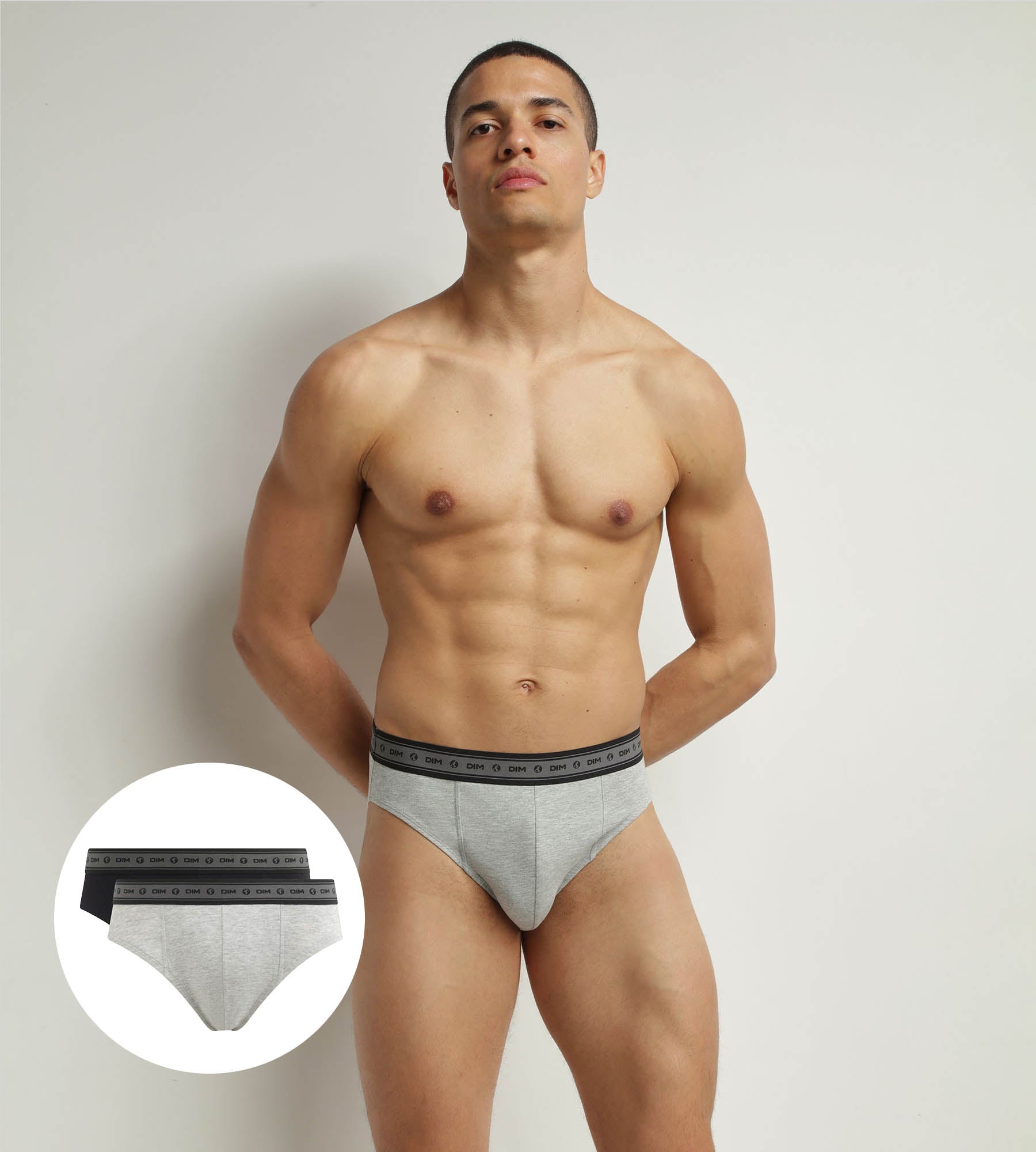 Ein minimalistischer und bequemer Look mit dem 2er-Pack Herren-Slips aus Bio-Baumwolle Grey Black Dim Good.