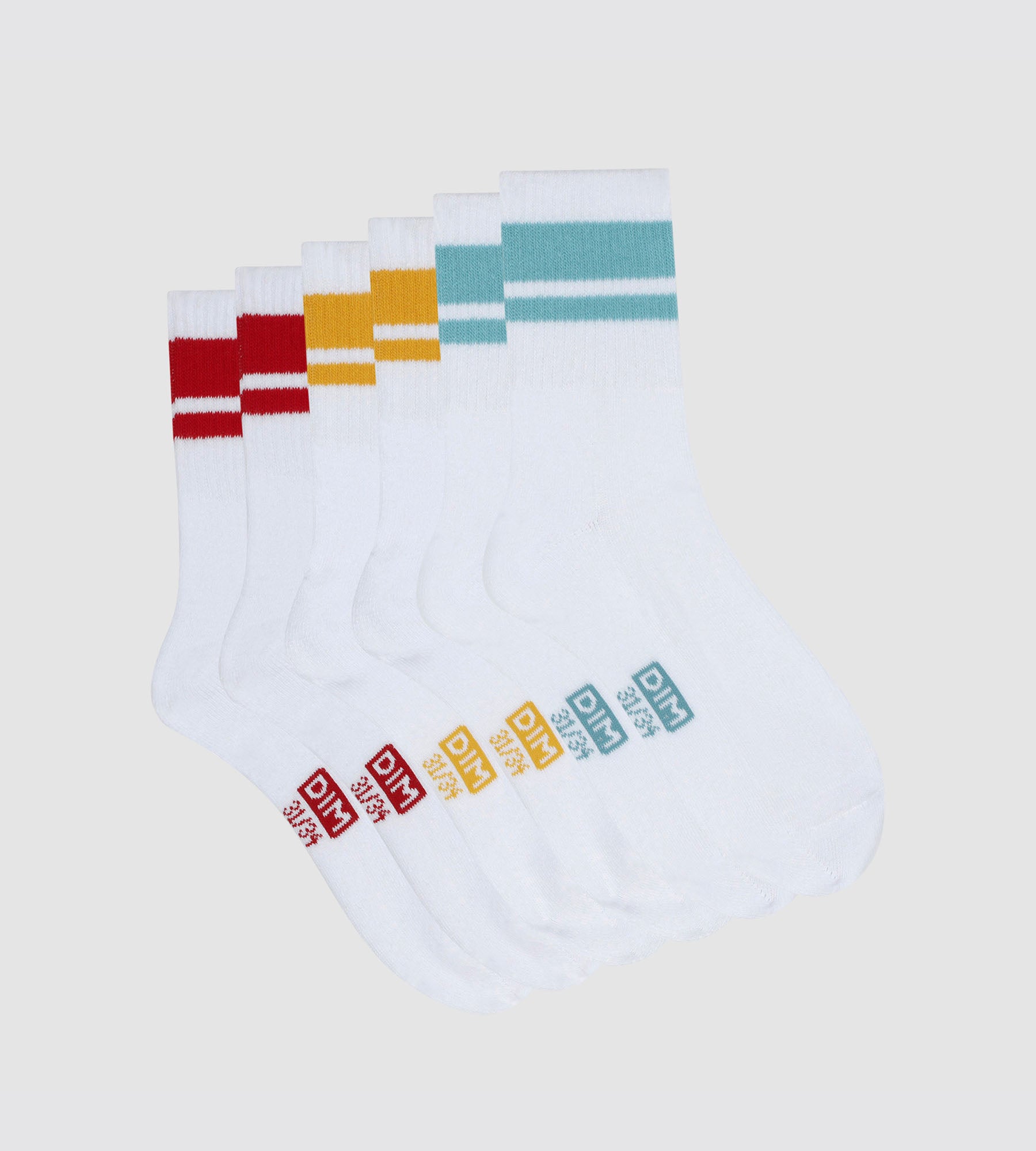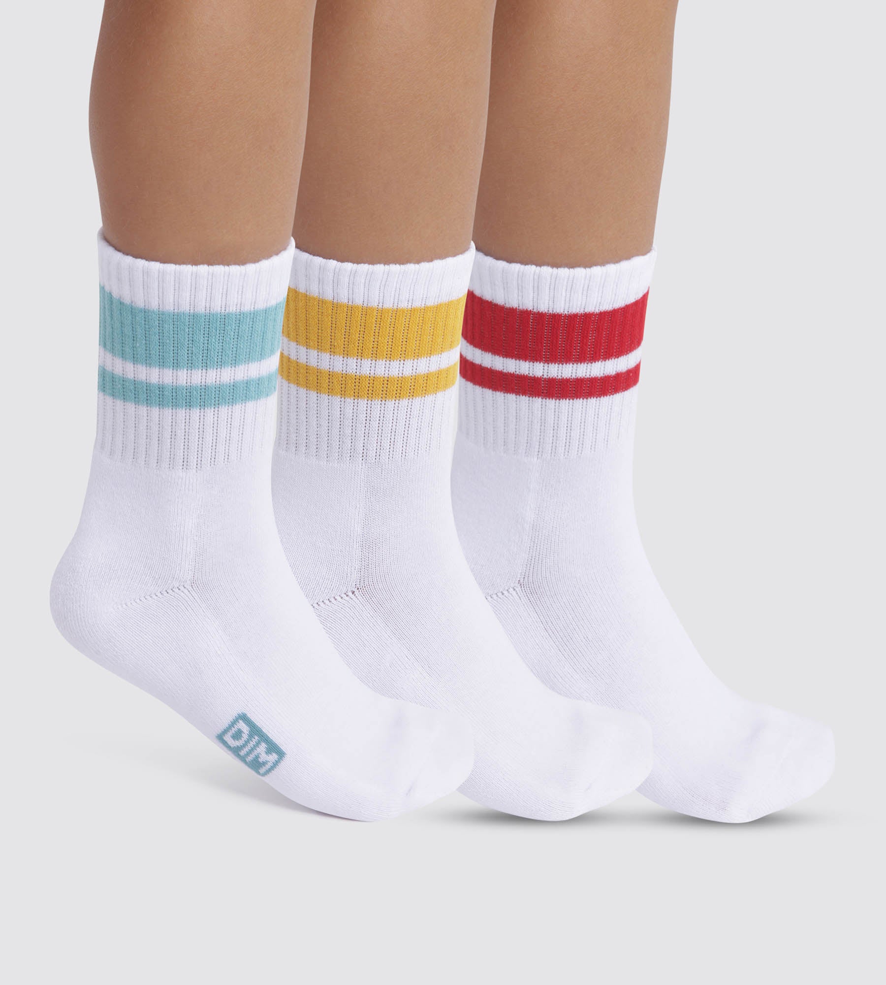 Stylische und bequeme Socken für den Nachwuchs gesucht? Unsere DIM Sport Tennis-Socken für Kinder und Teenager sind aus schnelltrocknender Baumwoll-Elasthan-Mischung und dank der weichen, stoßdämpfenden Sohle extra angenehm zu tragen. Die fröhlichen Farben im Bündchen machen einfach gute Laune!
