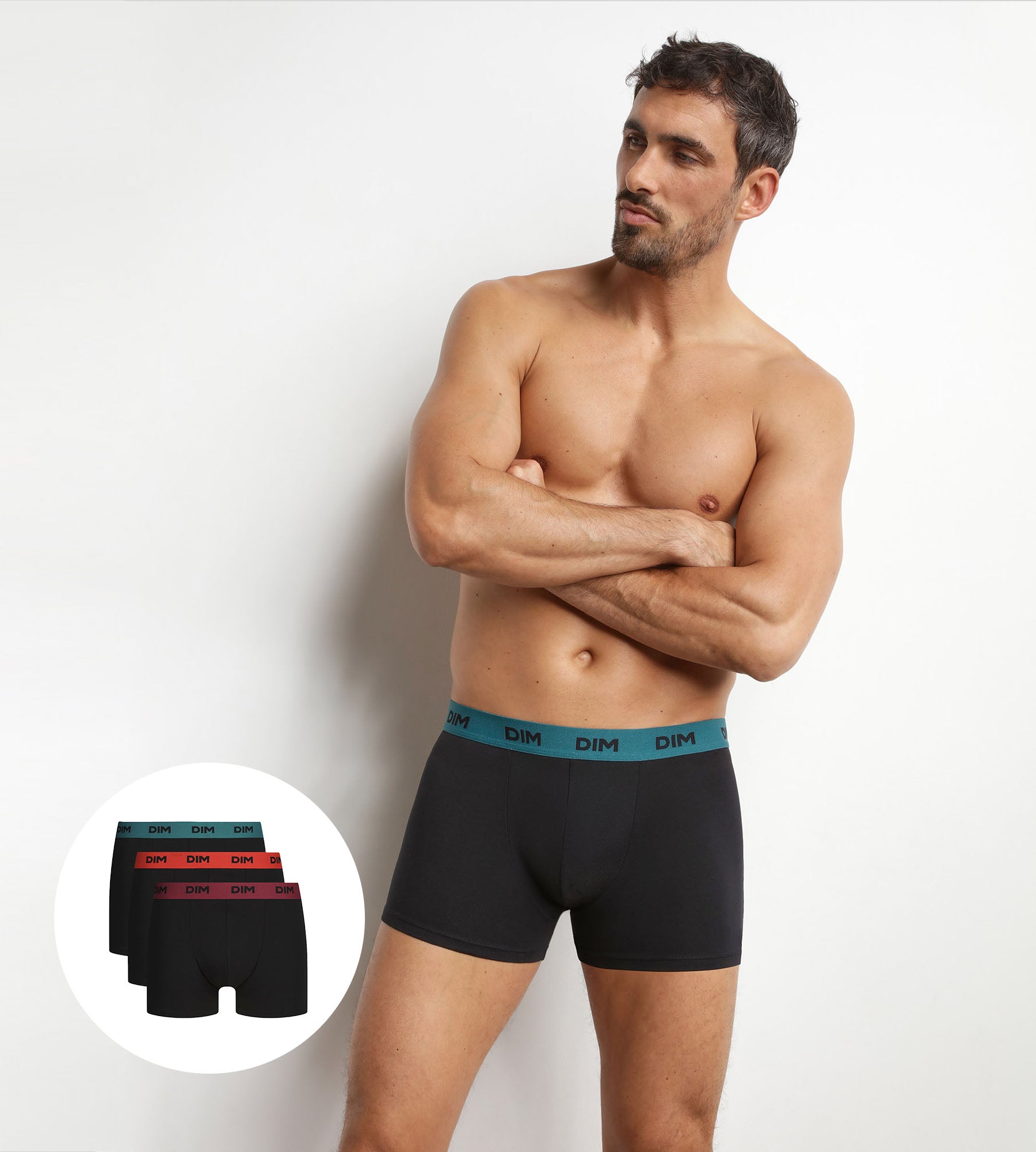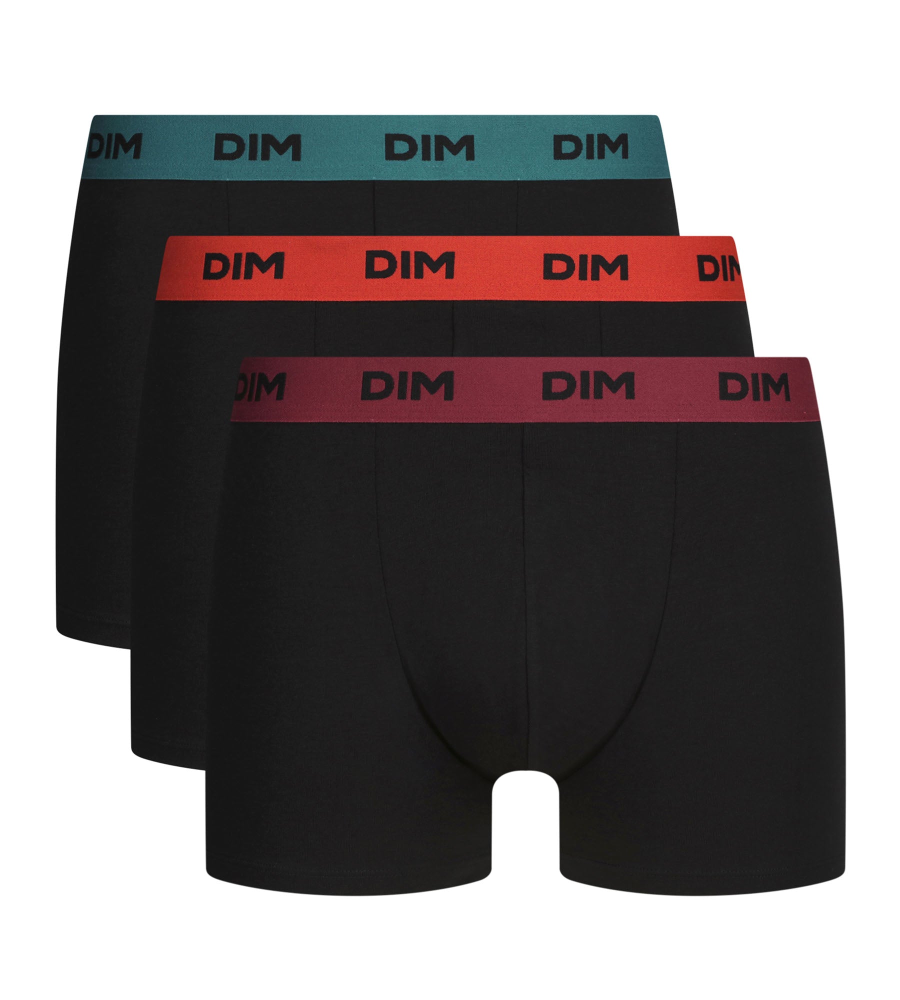 Mit diesem 3er-Pack Boxershorts aus Baumwolle für Herren von Mix & Colors setzt Dim auf ein wirkungsvolles Duo: einen einheitlichen, sehr schlichten schwarzen Körper und farbige Bundstreifen, die mit dem sportlichen Dim-Logo genau den richtigen Kontrast setzen. Die Stretch-Baumwolle sorgt für dauerhafte Belüftung und Tragekomfort, sodass diese Boxershorts von Dim jeden Tag getragen werden können. Der kurze, gerade Schnitt dieser Boxershorts sitzt natürlich und bietet zuverlässigen Halt, ohne einzuengen.