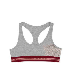 Grau melierter Mädchen-Sport-BH aus Stretch-Baumwolle mit Metallic-Print - DIM Sport