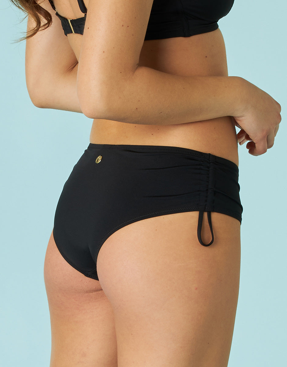 Essentielle Linien und maximaler Komfort für die High-Waist-Bikinihose der Serie Essential Micro. Ihr umhüllendes Design sorgt für eine bequeme und formende Passform, während die verstellbaren Seiten mit Kordel es dir ermöglichen, den Schnitt nach deinen Bedürfnissen anzupassen. Die dehnbare Mikrofaser garantiert Weichheit und Bewegungsfreiheit, was sie ideal für jeden Moment am Strand macht.