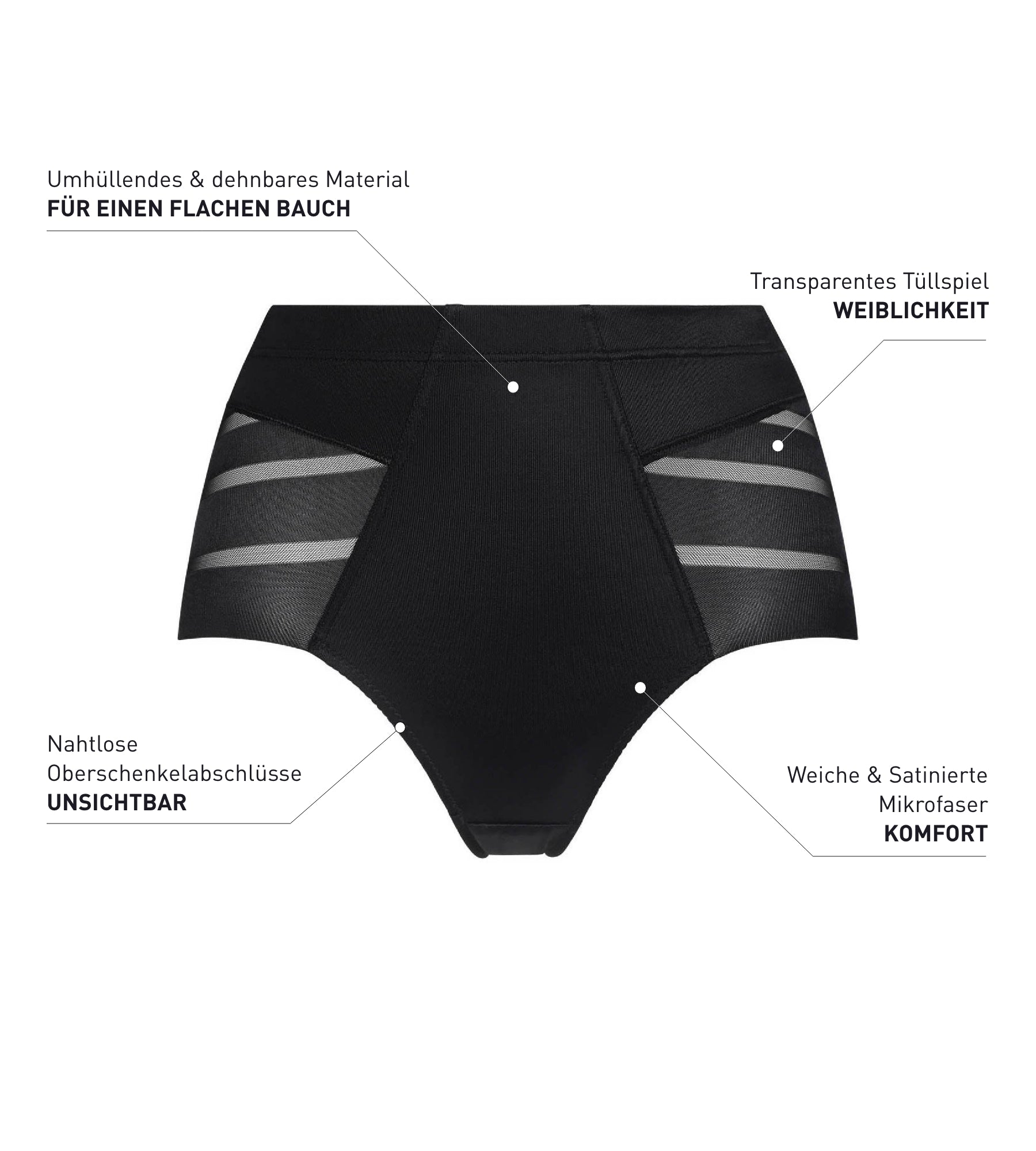 - EFFEKT VON FLACHEM BAUCH: Der klassische Schnitt und die dehnbare Mikrofaser glätten Bauch und Hüften.