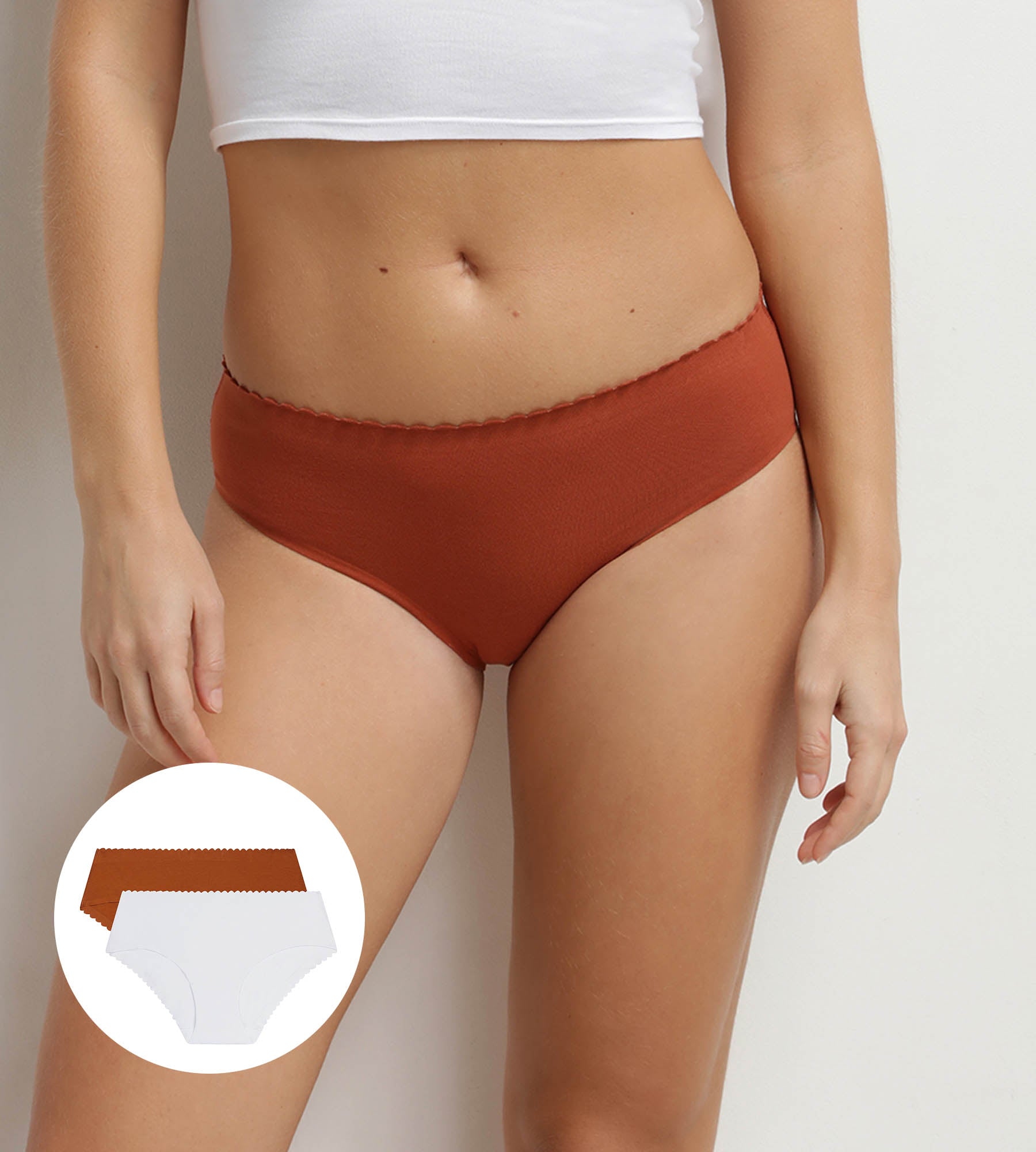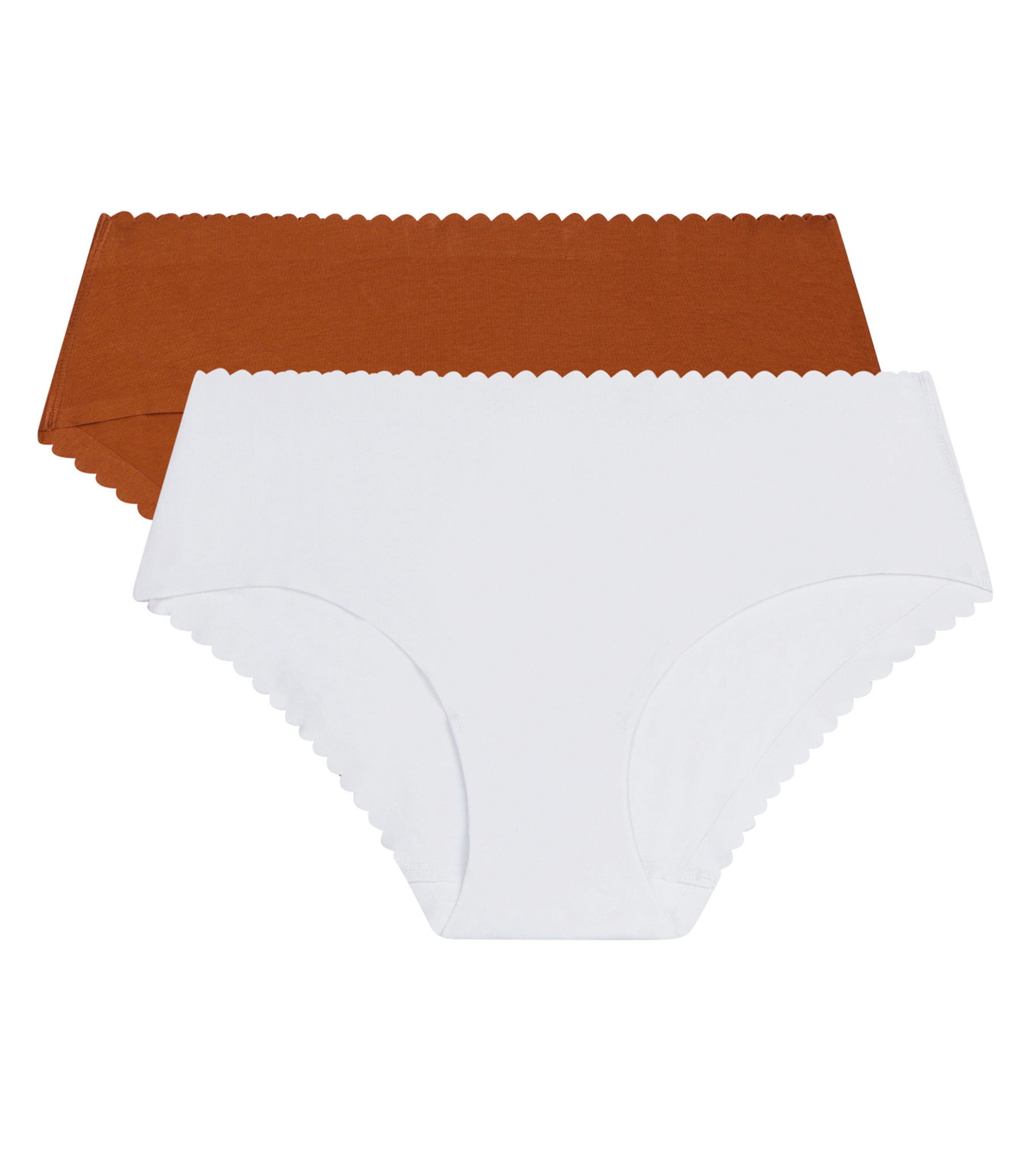 Lass dich von der Weichheit unseres 2er-Packs unsichtbarer Body Touch Easy-Slips aus Stretch-Baumwolle in Weiß und Warmem Zimtbraun verzaubern.
