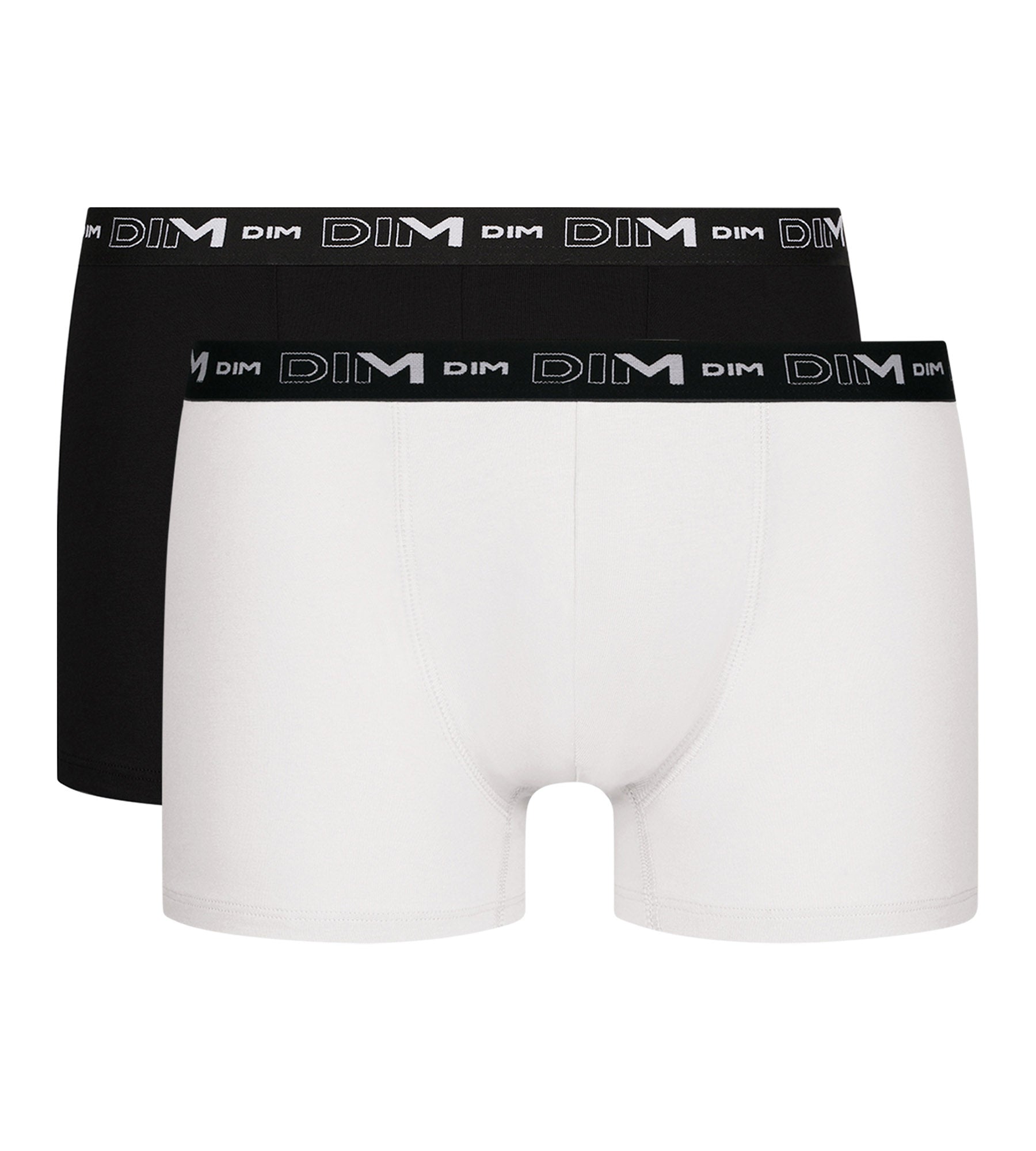 Kombiniere Komfort und zeitlosen Stil mit dem 2er-Pack Herren-Boxershorts Dim Coton Stretch Weiß und Schwarz.