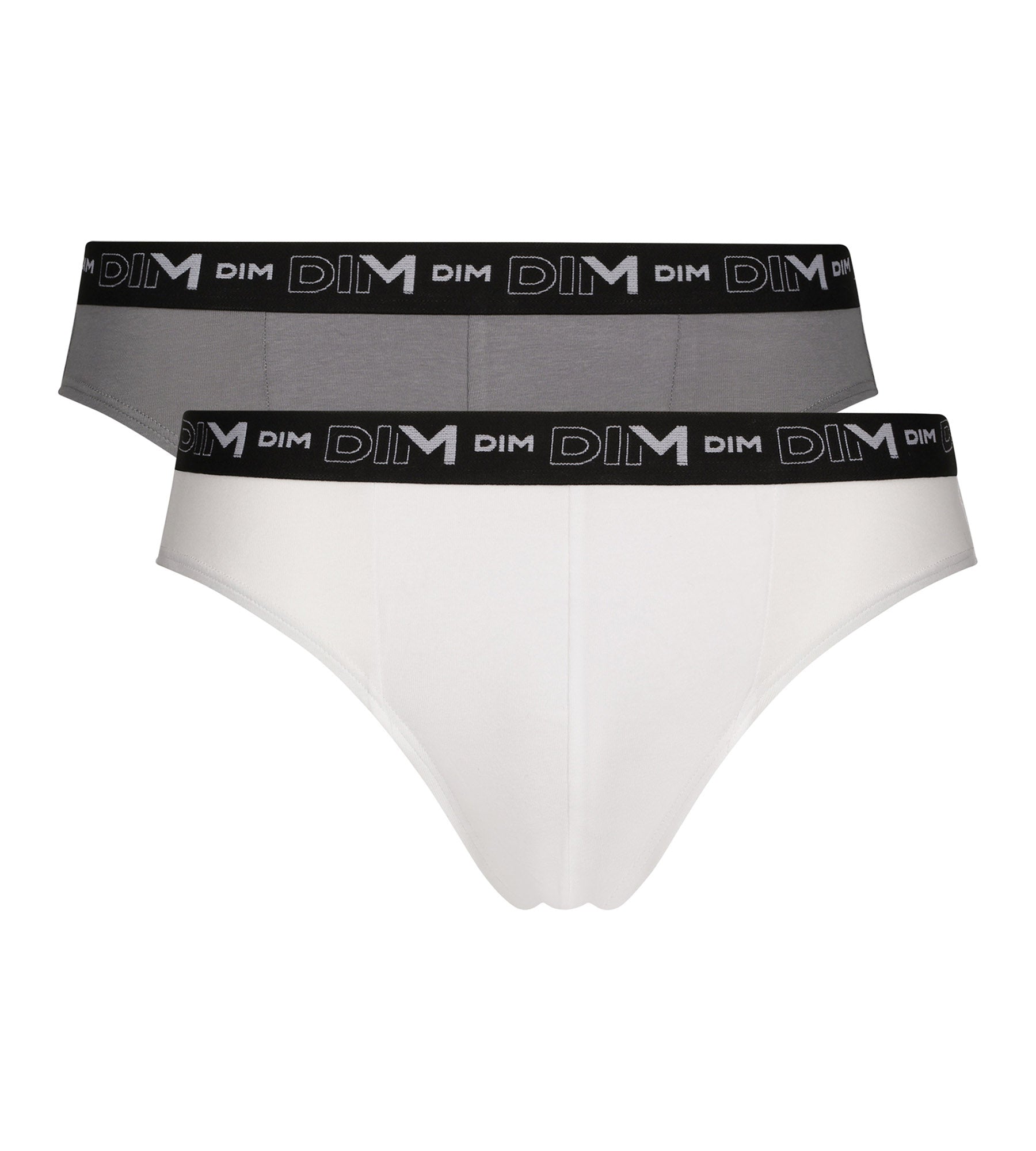 Entscheide dich für das 2er-Pack Herren-Slips in Weiß und Grau mit grafischem Bund von Dim Coton Stretch, für einen schlichten und modernen Look.
