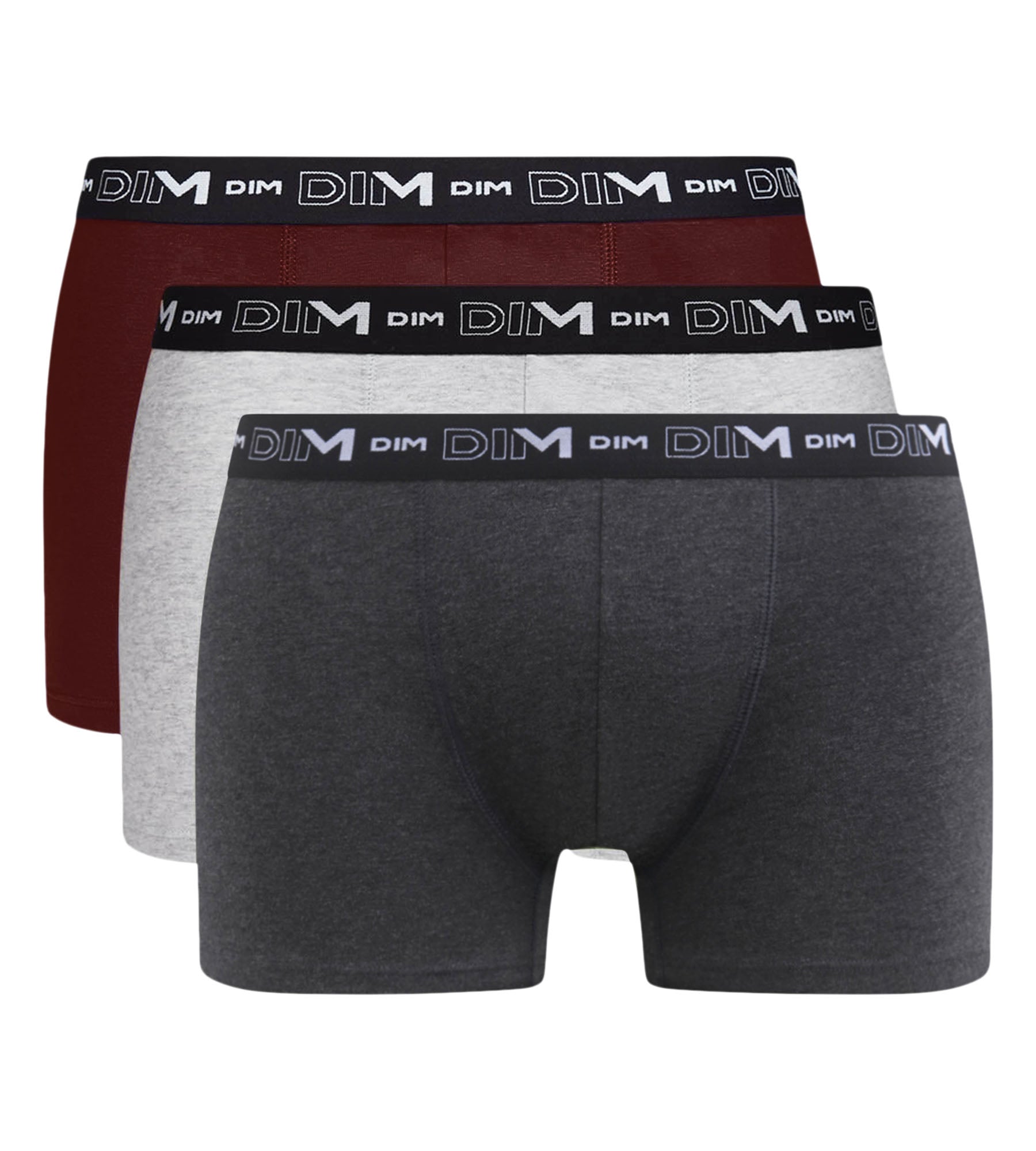 Entscheide dich für Schlichtheit mit dem 3er-Pack Boxershorts für Herren Dim Coton Stretch Cendre aus bequemem Strick in gedeckten Farbtönen.