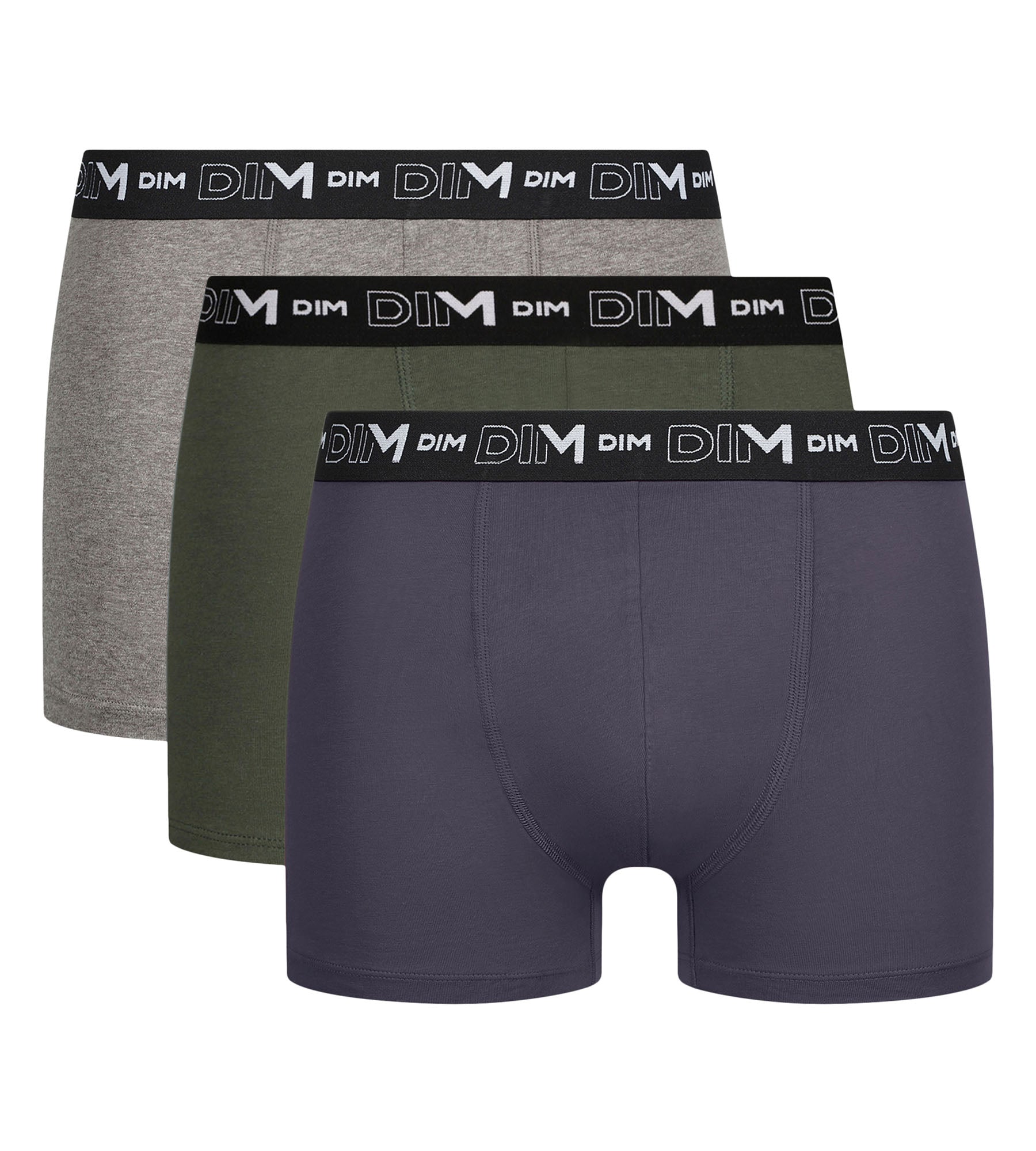Um zwischen neutralen Farbtönen und kräftigeren Farben zu variieren, kombiniere sie mit den anderen 3er-Packs Boxershorts für Herren und Slips aus Baumwollstretch von Dim.