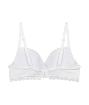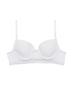 A must-have for every underwear drawer, the Dim Trendy girls' white stretch cotton moulded cup bra features delicate lace to enhance the cleavage!
