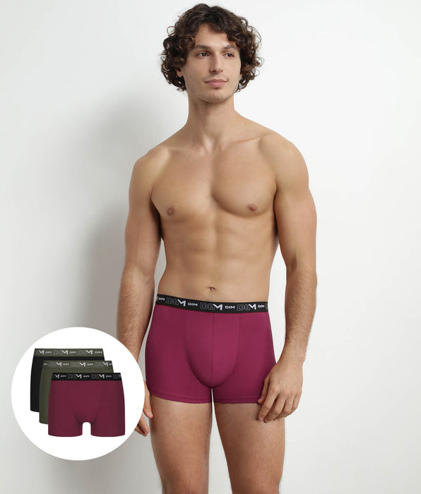 Bring contrast and character to your lingerie with the Black, Khaki, Red Dim Coton Stretch men's boxer Pack of 3!