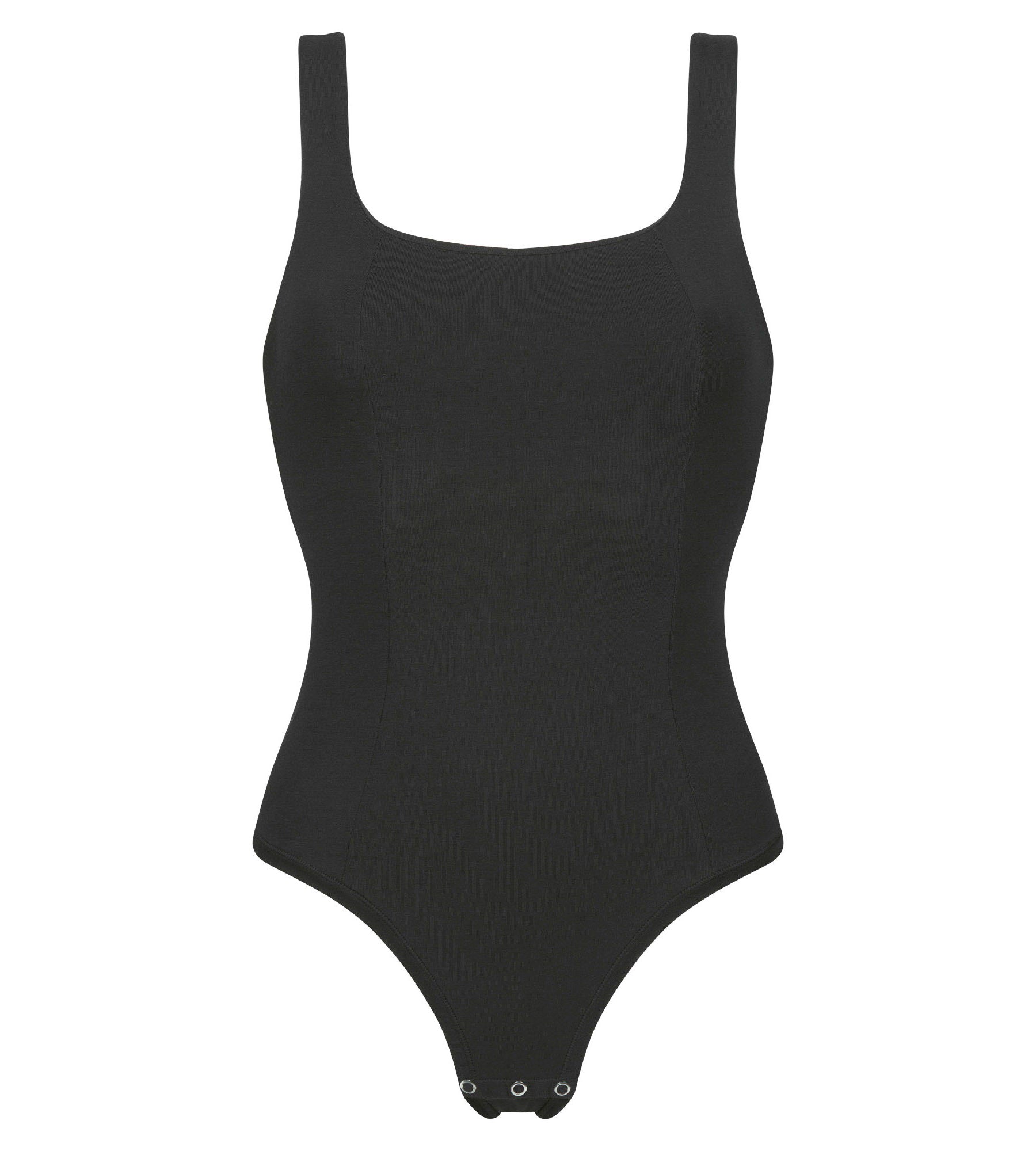 Women's Black modal cotton bodysuit with straps and square neckline Dim Icon