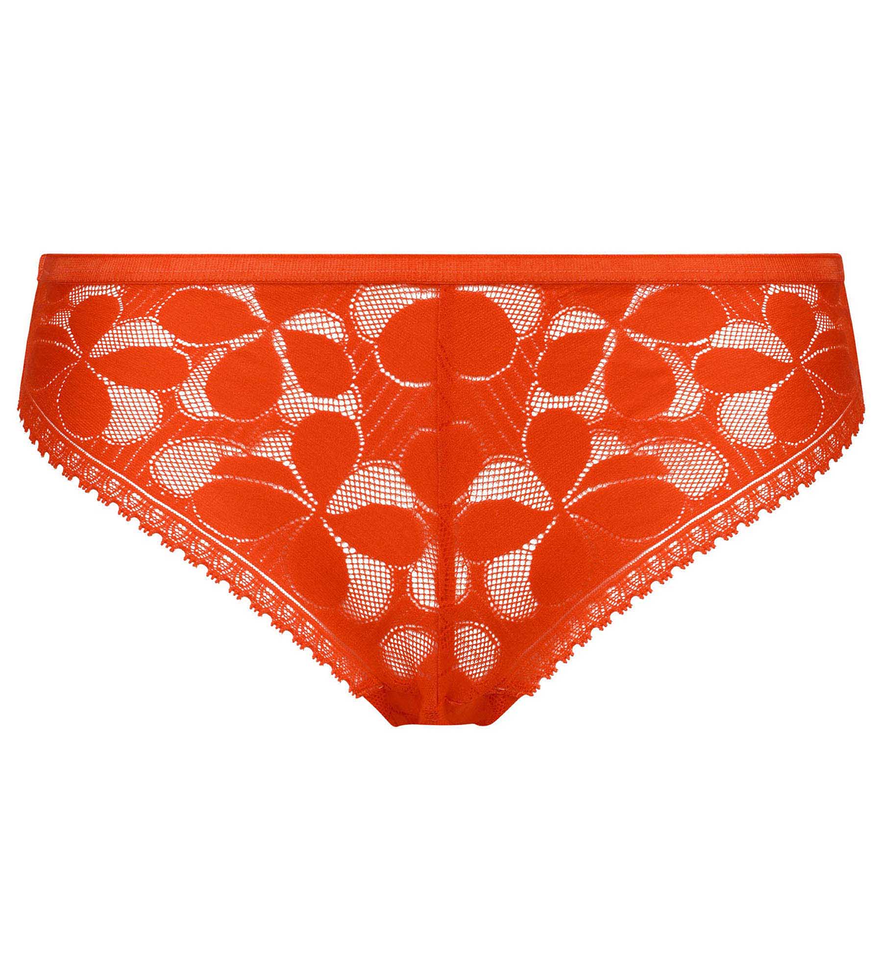 Catch the Dim Art Flower women's Orange lace panties with a revisited seventies look. Its classic cut with soft edges and cotton base naturally és the silhouette for comfortable everyday wear. The hemstitch, with its large flowers, gives this lace panty a touch of elegance and character. Thanks to its contrasting elastic at the waist, the Art Flower women's briefs are also very modern.
