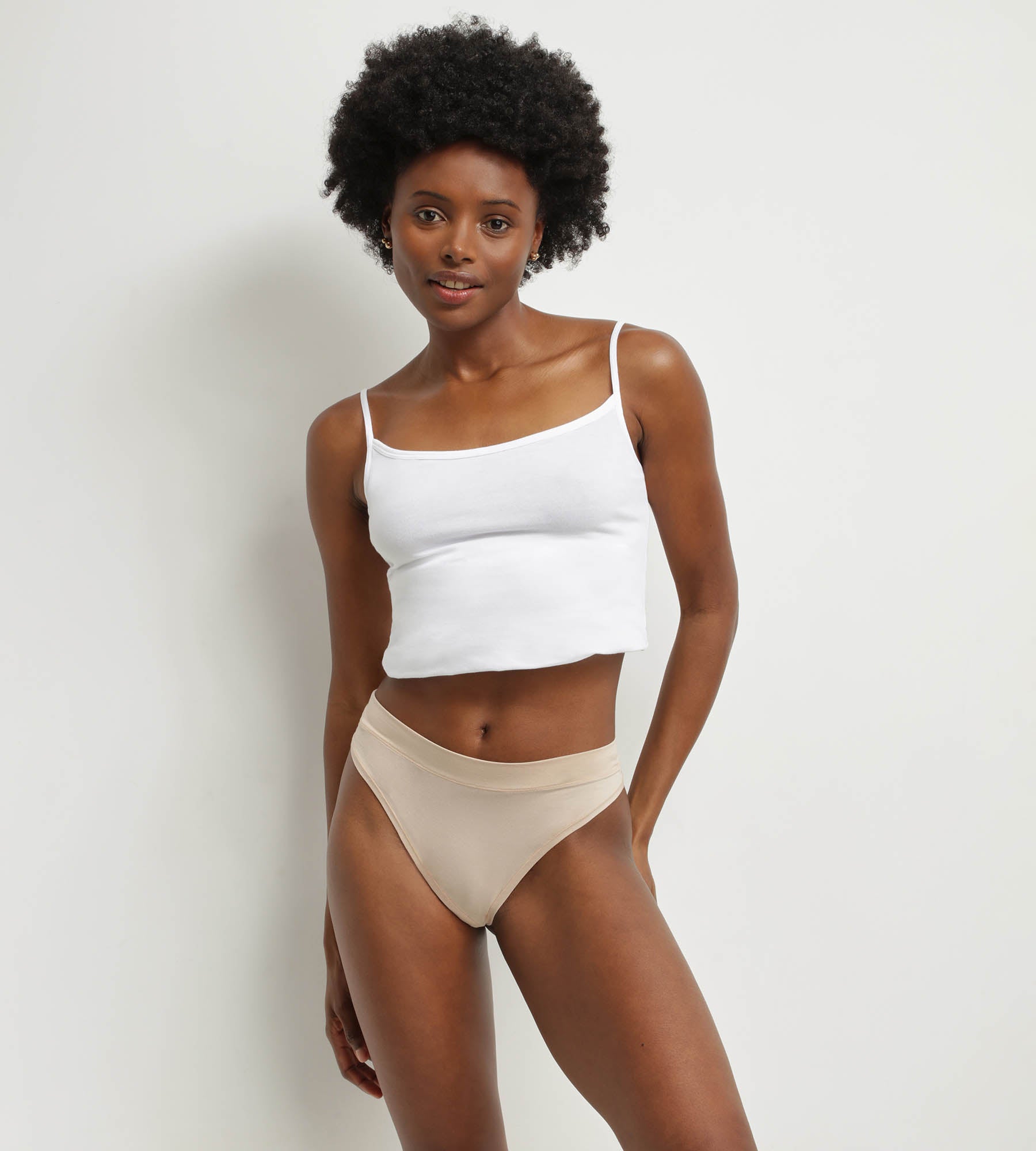 The Nude Dim Comfort Collection women's thong combines the lightness of modal cotton with a perfectly fitted cut, for a flawless look. Its wider elastic waistband offers support without discomfort, while the discreet nude tone makes it ideal for blending under any outfit.