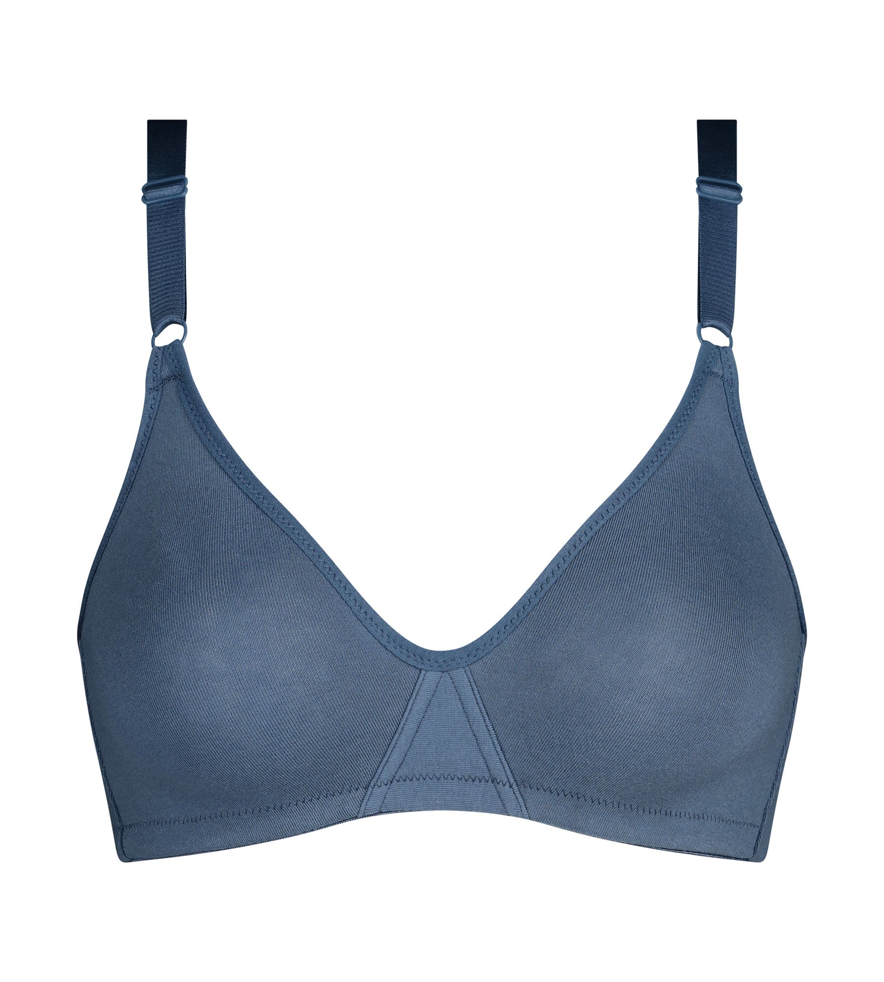 Enjoy the ultimate comfort of the Dim Daily non-wired bra in ash blue cotton, with its elegant and refined style.
