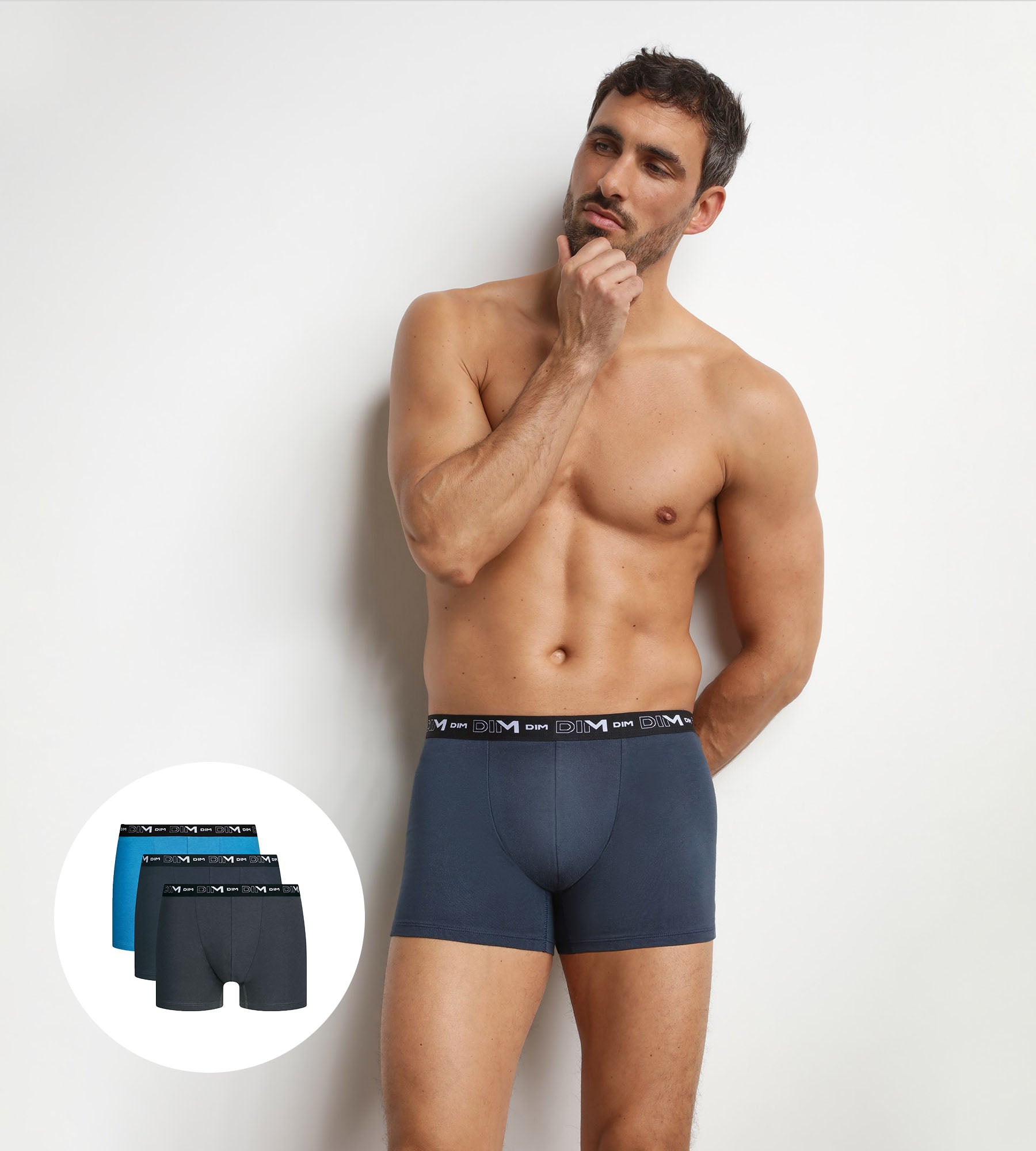 For a change of style, you may also like the other vibrant or more neutral colour palettes of the Dim Stretch Cotton boxer shorts and briefs packs.