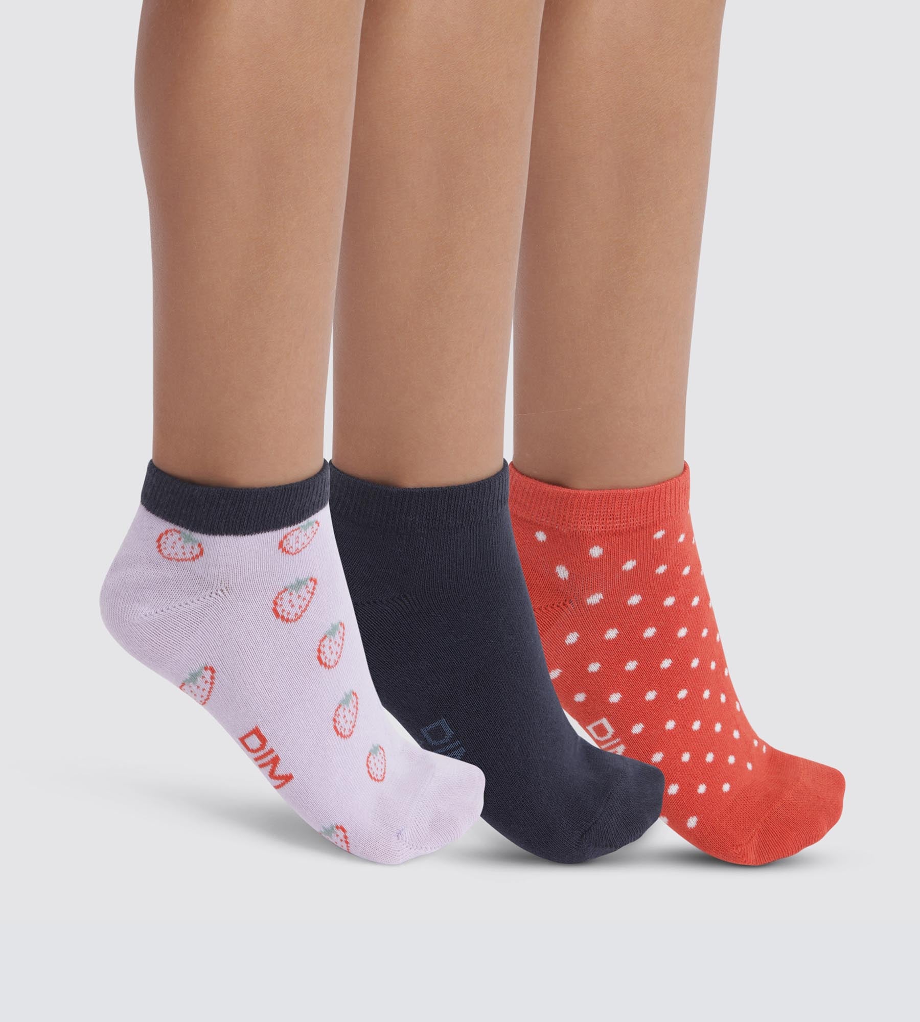 Fall for the tutti frutti style of this pack of 3 pairs of Lila, Ginger, Navy children's socks with a Dim Cotton Style strawberry print!