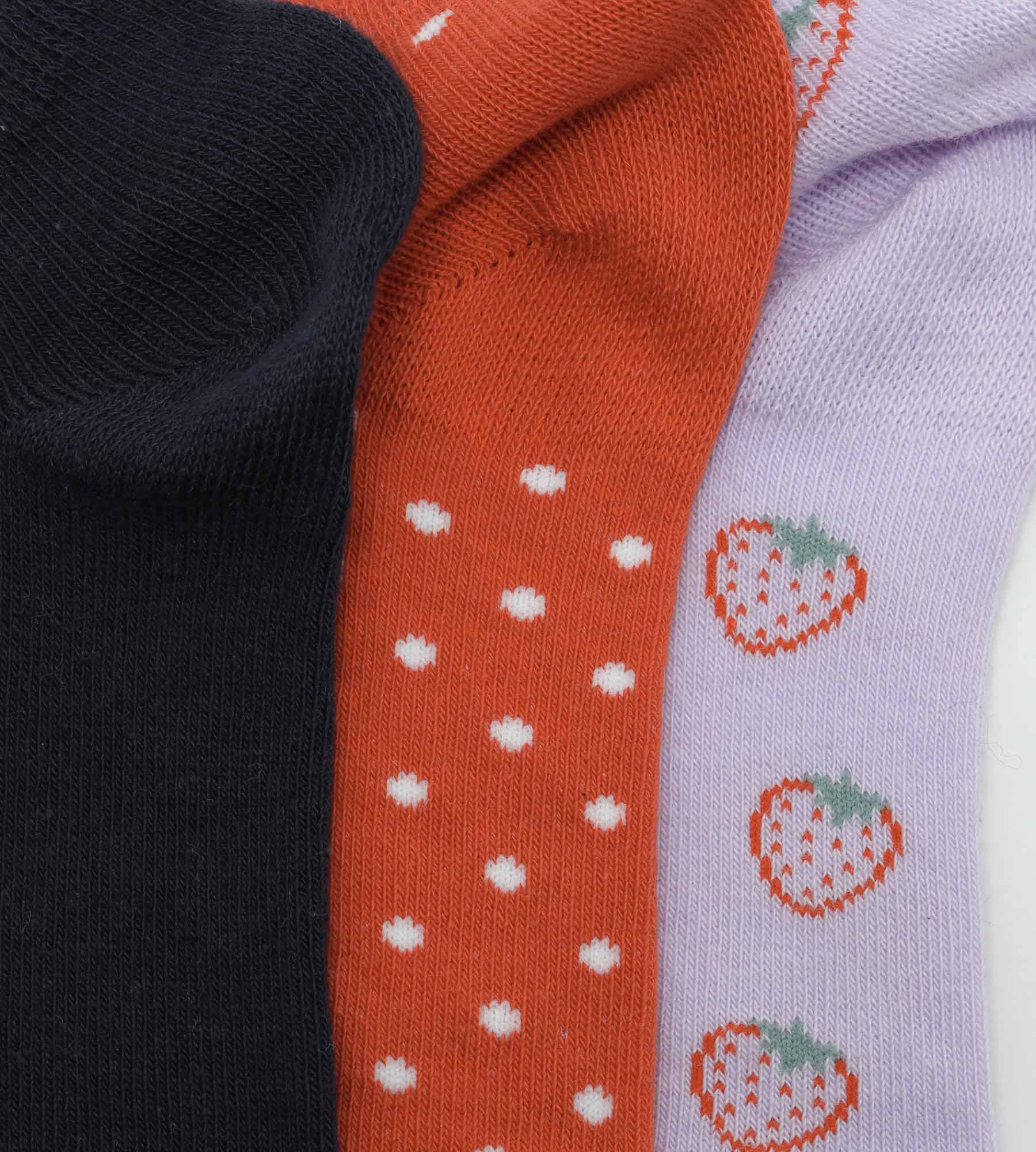 Pack of 3 pairs of Lila children's socks with strawberry pattern Cotton Style