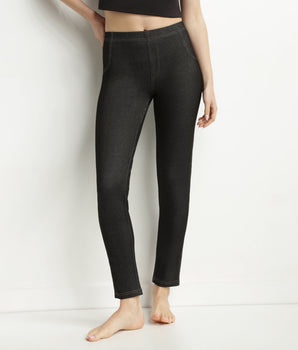 Take on the day in relaxed style with the Relax & Go women's leggings in trendy black Jean-effect fabric!