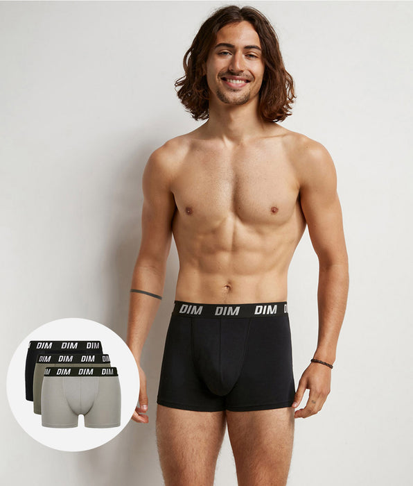 Camouflage mode activated with our set of 3 Men's Boxers Dim Sport in cotton active thermoregulator Black, Green, Taupe, sober and very effective!