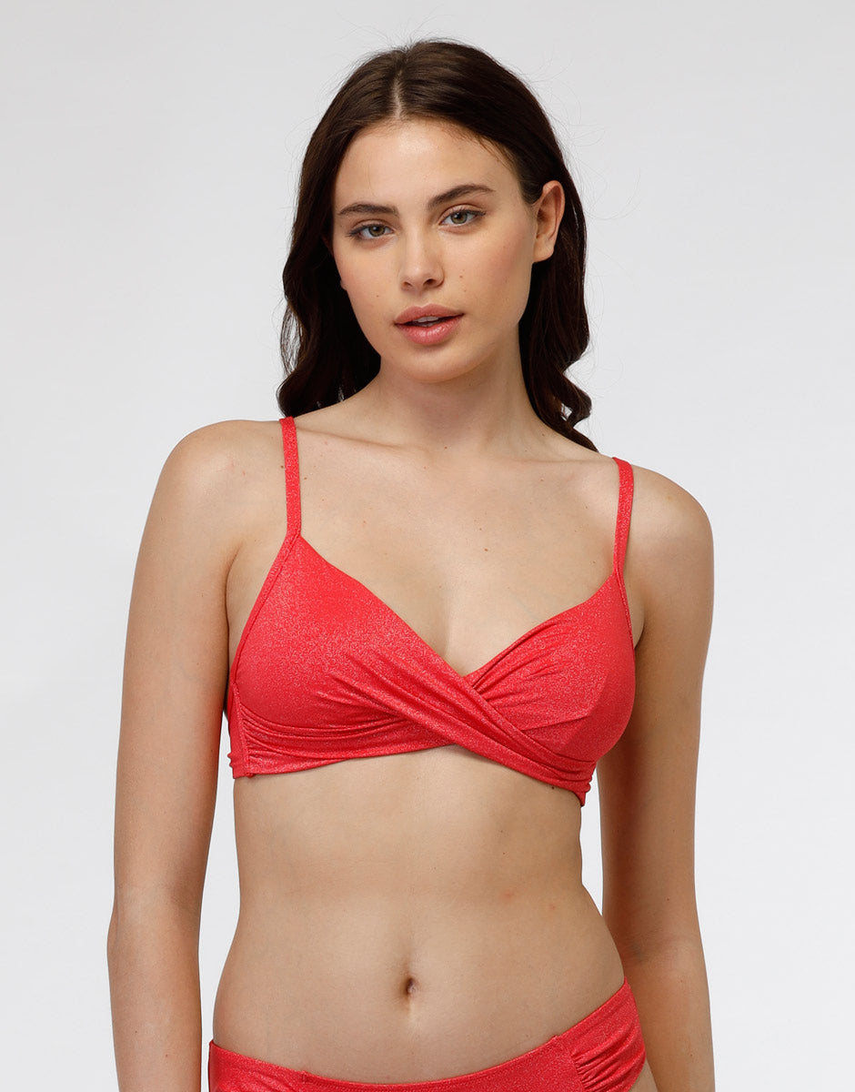 Microfibre Plain Lurex underwired bra, coral
