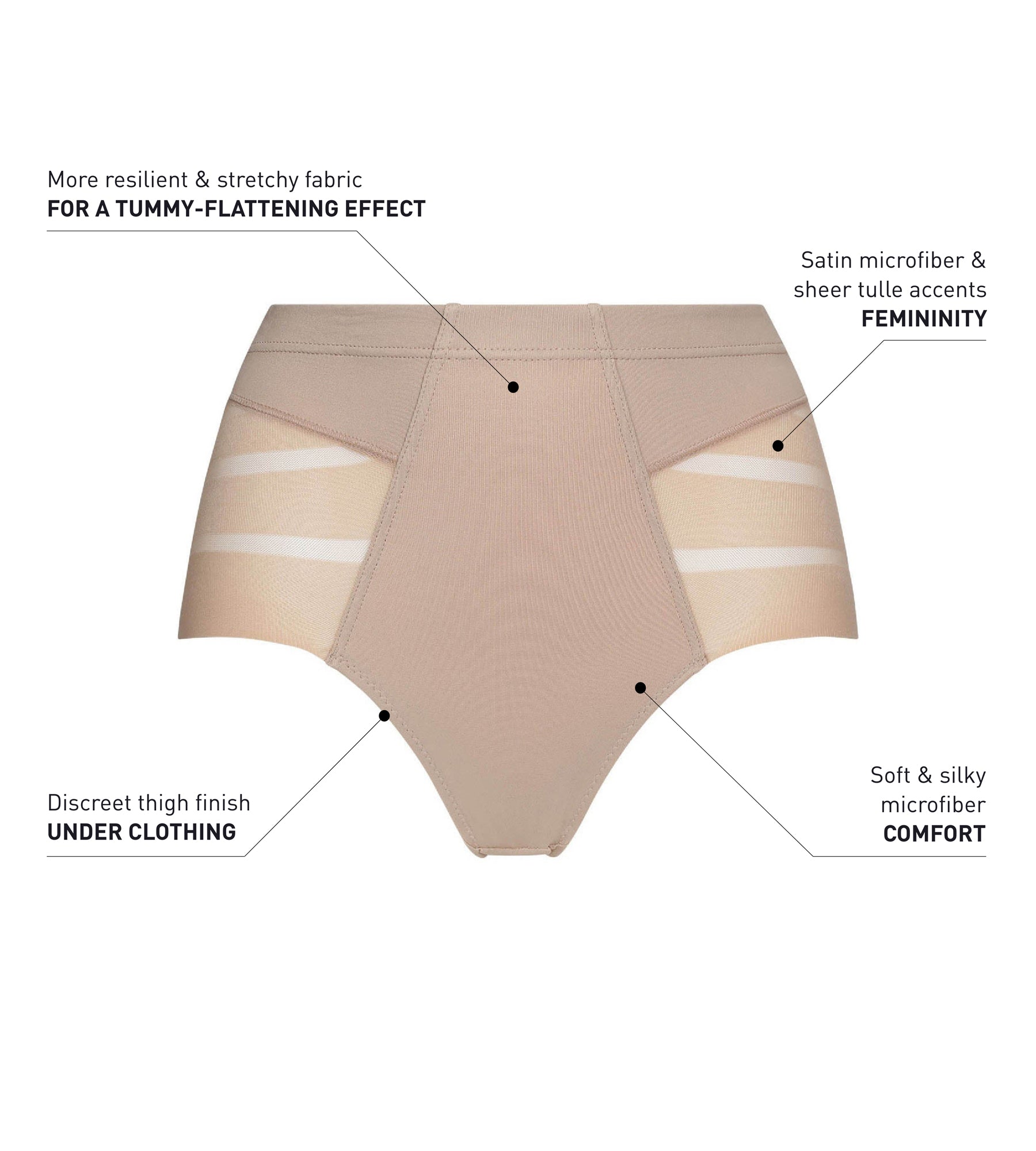 - FLAT TUMMY EFFECT: The classic cut and stretchy microfiber smooth the tummy and hips.
