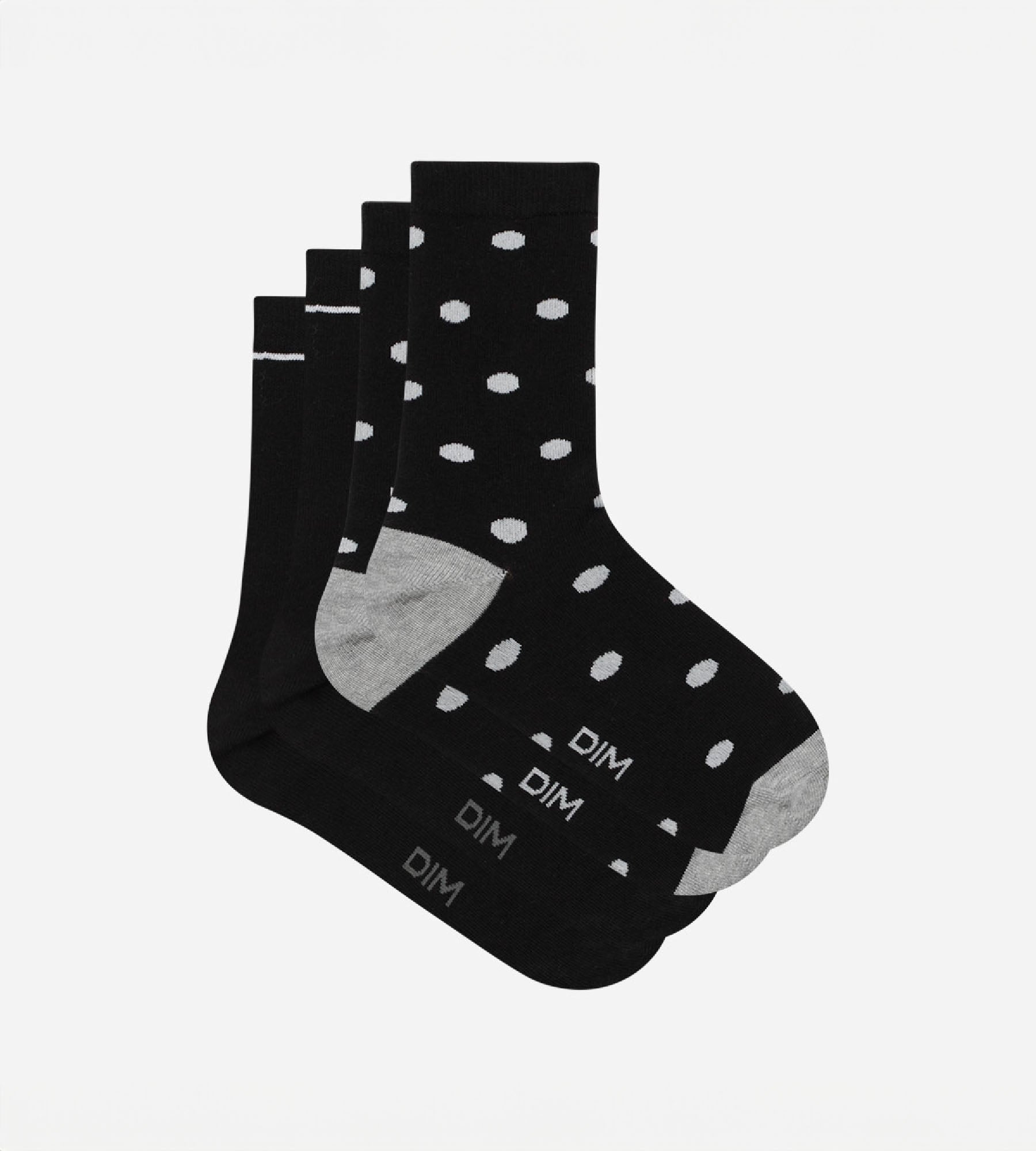 Pack of 2 pairs of women's socks Black with large polka dots Dim Coton Style