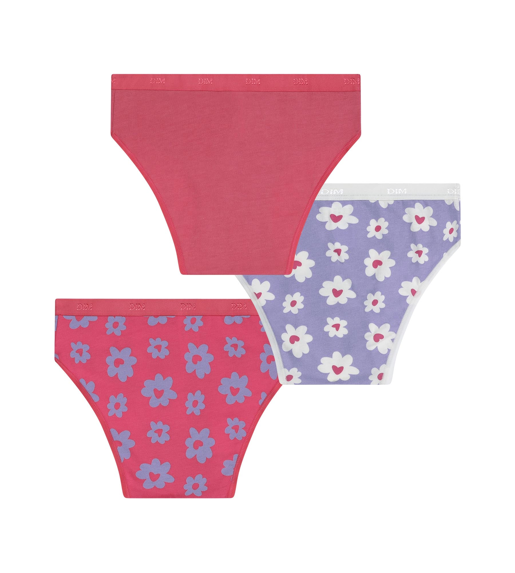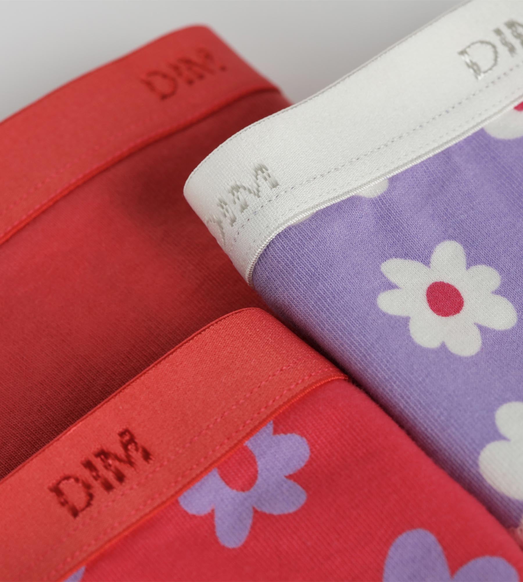 With this pack of 3 Les Pockets Bourgeons teen knickers, Dim goes all out with punchy colours. There’s a bright pink girls’ brief, a purple knicker dotted with white flowers and a bright pink model covered with large pop-style floral patterns. The pack is designed to add a fun touch to her lingerie drawer while maintaining the comfort of stretch cotton. Each style is lightweight and comfortable to wear, thanks to a stable cut that doesn’t show under clothing. These cheerful children’s knickers are ideal for adding a touch of pep to everyday life.