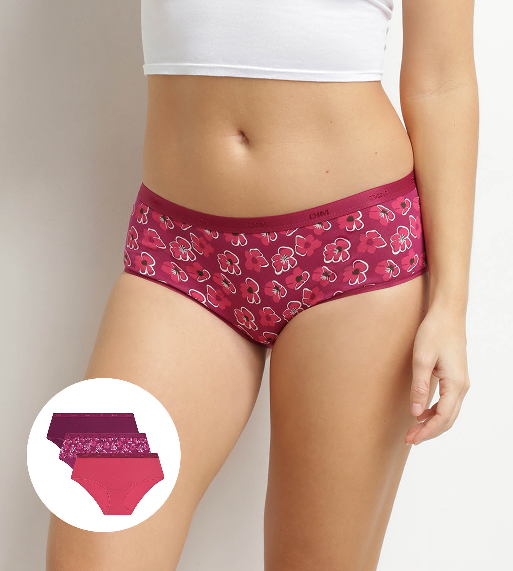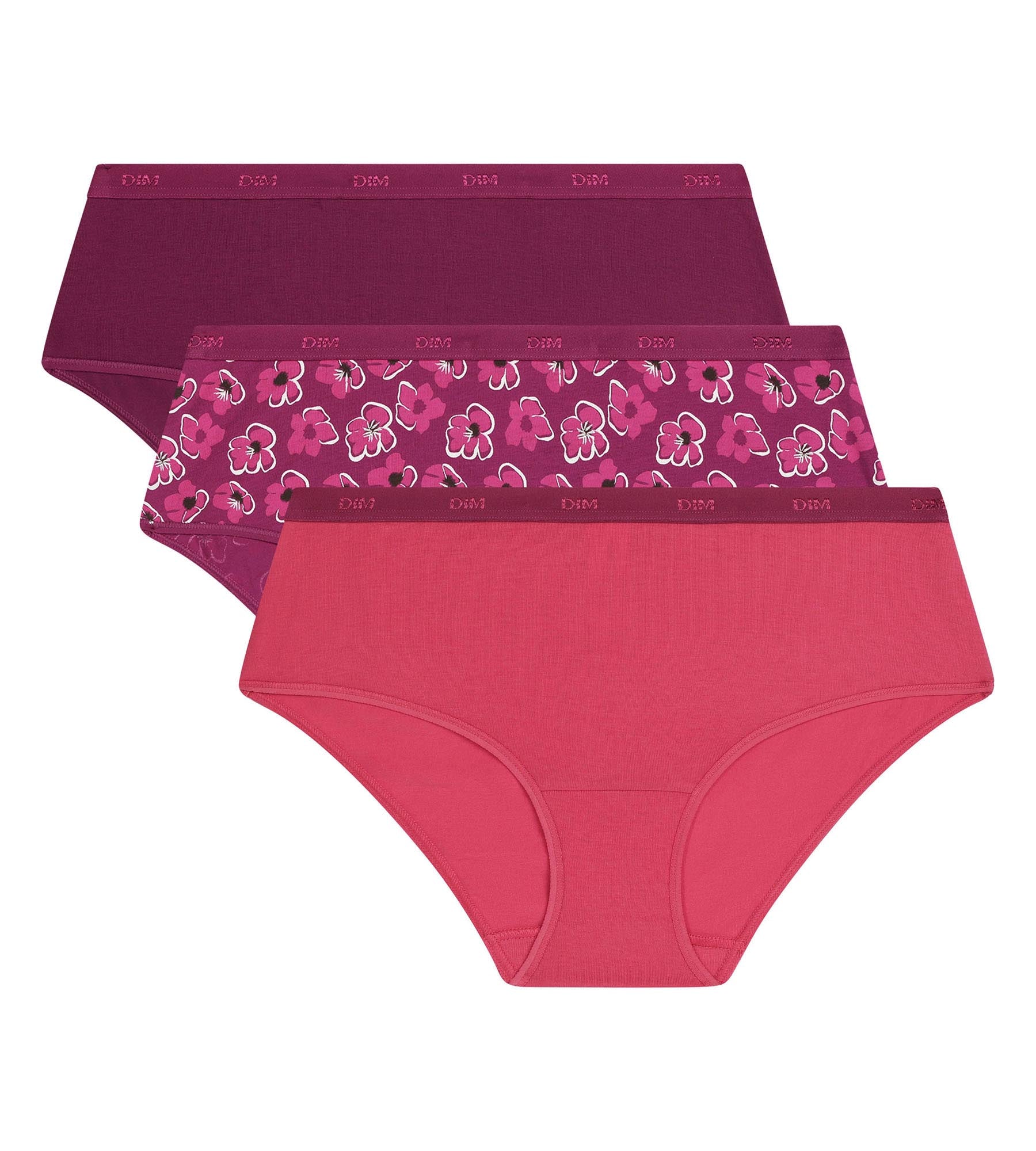 Want to move away from classic plain colours? This pack of 3 Dim women’s Les Pockets boxer shorts combines bright pink, deep ruby and floral patterns to brighten up your everyday life. The vibrant colour palette injects energy without being over the top, while the minimalist design ensures total discretion under your clothes. The perfect trio of women’s cotton boxer shorts to add a stylish and simple twist to your lingerie wardrobe.