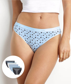 Fall for the candid style of the Les Pockets Pack of 5 women's stretch cotton knickers in blue and grey floral motifs!