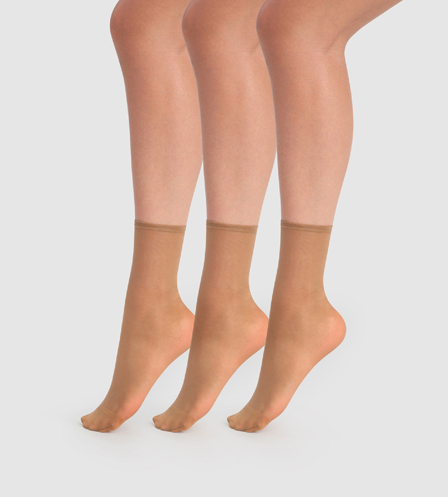 Be impeccable every day with the pack of 3 Beauty Resist 20D transparent cinnamon ankle socks without compression!