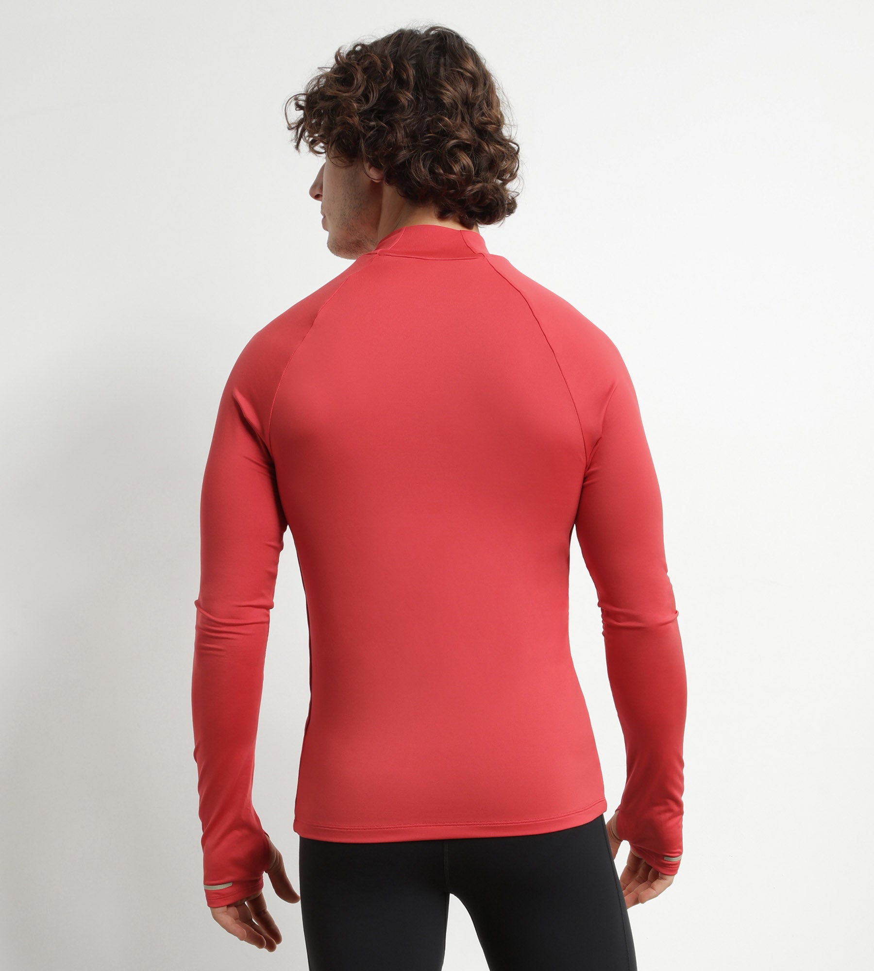 For your outdoor outings, adopt the Red DIM Move microfiber men's sports top with stand-up collar and reflective stripes!