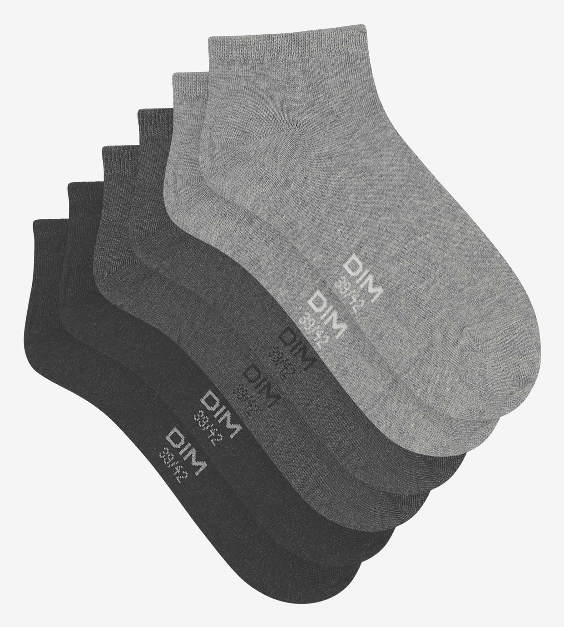 Opt for versatility with our pack of men's socks Dim Coton! Made from a breathable knit fabric, these men's cotton socks Dim Coton socks wick away moisture efficiently, for maximum comfort. Thanks to their short cut and soft finish, Dim Coton socks slip easily and discreetly into all your shoes. The three shades of grey complement your outfits with elegance and casualness.