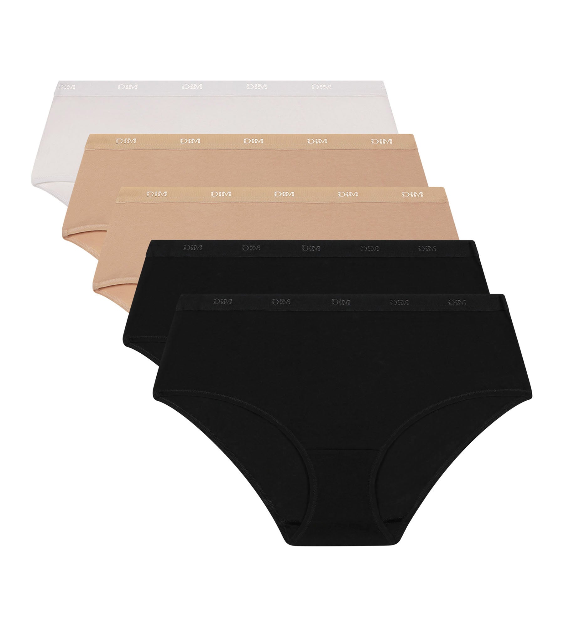Simple and feminine, fall for the Les Pockets Ecodim Pack of 5 women's boxers in Black, Nude and White stretch cotton.