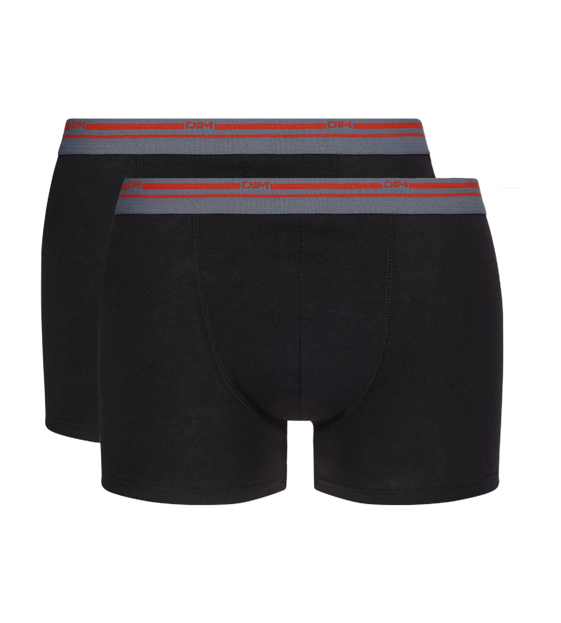 Add subtle texture to your underwear collection with this pack of 2 Daily Colors men's boxer shorts in black stretch cotton with a touch of red. We love: • The ultra-flexible stretch cotton for a tailored fit • The fluid coverage of these short boxer shorts • The plain black colour for a simple style • The double-layered front panel for constant support • The contrasting waistband for a graphic touch Made from soft stretch cotton, this pack of 2 Daily Colors men's boxer shorts is all about comfort, simplicity and effectiveness. The plain black body is understated and easy to pair, while the signature waistband with red stripes adds just the right amount of detail to the design. A practical and modern option to easily enhance your collection of men's boxer shorts. For a varied rotation, you can complement this pack of 2 Daily Colors men's cotton boxer shorts with other colours from the range in more contrasting shades.