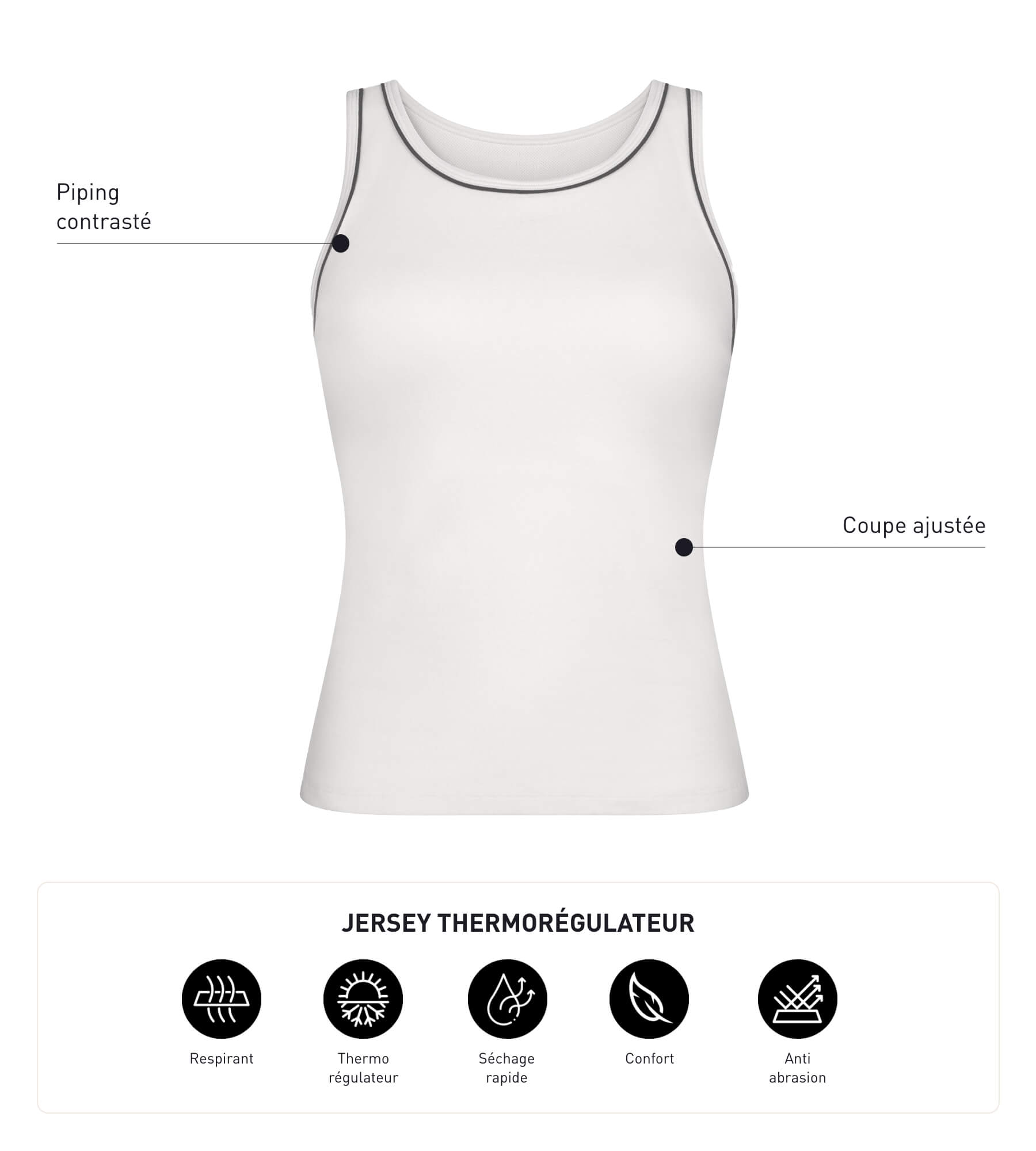 For optimum freshness, choose the Dim Move women's sports top in Ecru thermo-regulating jersey!