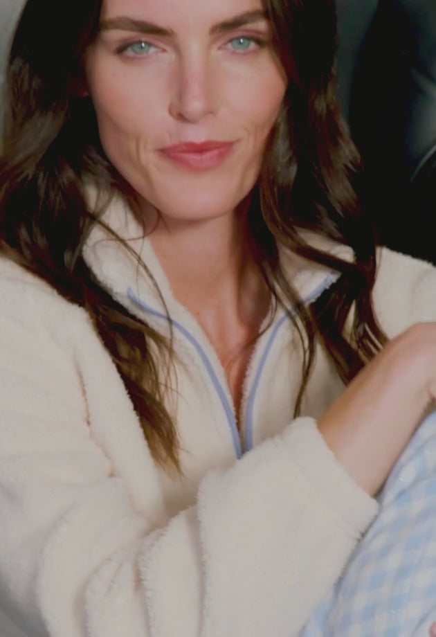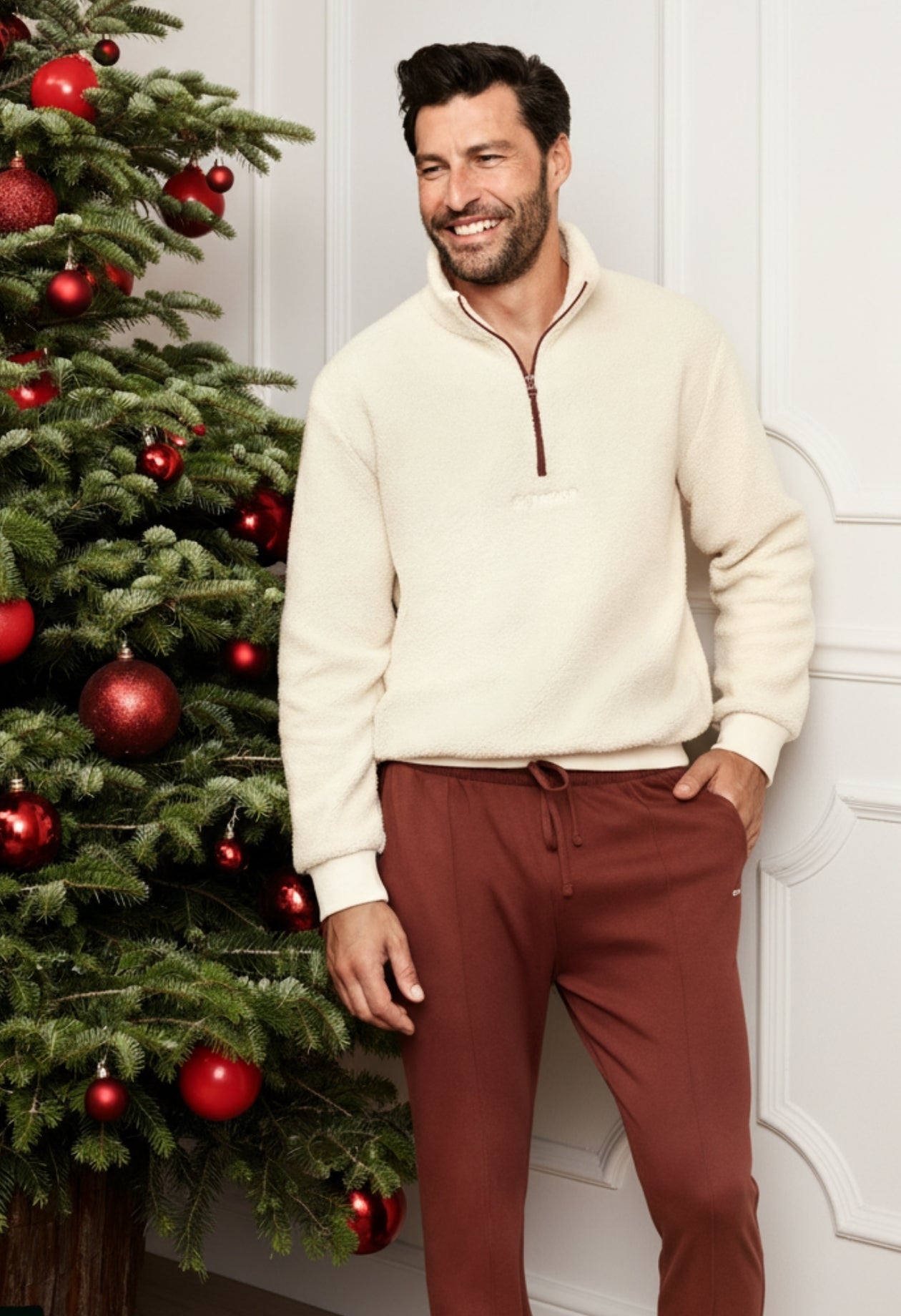 Christmas-colored pajamas, soft, warm, and comforting. Plush fabrics, festive shades, and comfortable cuts: the DIM selection promises cozy evenings, full of warmth and good cheer.